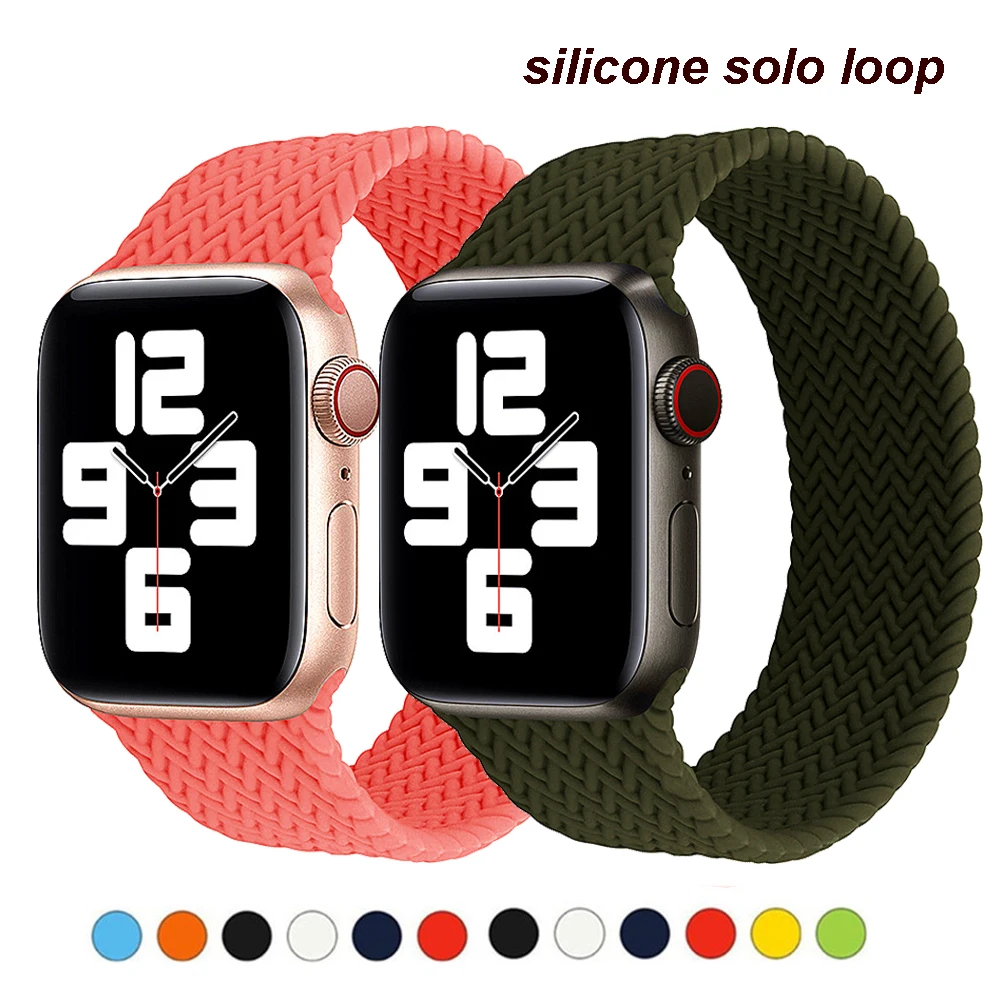 Ремешок Solo Loop для Apple Watch band 44 мм 40 мм 38 мм 42 мм, Силиконовый эластичный браслет с плетеным узором для iWatch Series 5 4 3 SE 6