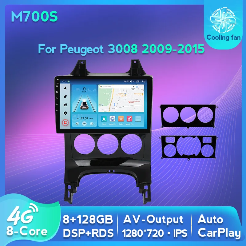 Автомобильный радиоприемник Carplay, IPS 1280*720, Android 11, видеоридеры GPS, 4G, LTE, Wi-Fi, для Peugeot 3008, 2009-2015, проигрыватель 8 ГБ + 128 ГБ, Восьмиядерный BT