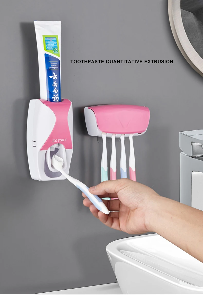 Набор аксессуаров для ванной комнаты, автоматический держатель для Диспенсер зубной пасты, для зубной щетки, стеллаж для хранения, настенный держатель, выдавливатель для зубной пасты