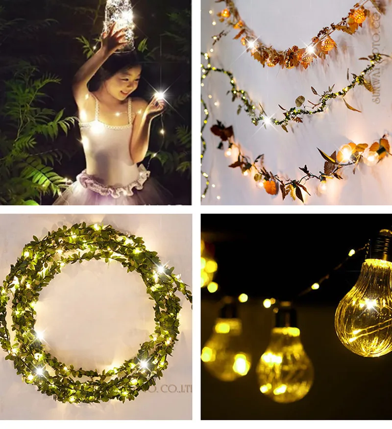 Водонепроницаемая светодиодная гирлянда с медной проволокой на батарейках 3AA, сказосветильник гирлянда для свадьбы, Рождества, праздничное украшение вечерние НКИ