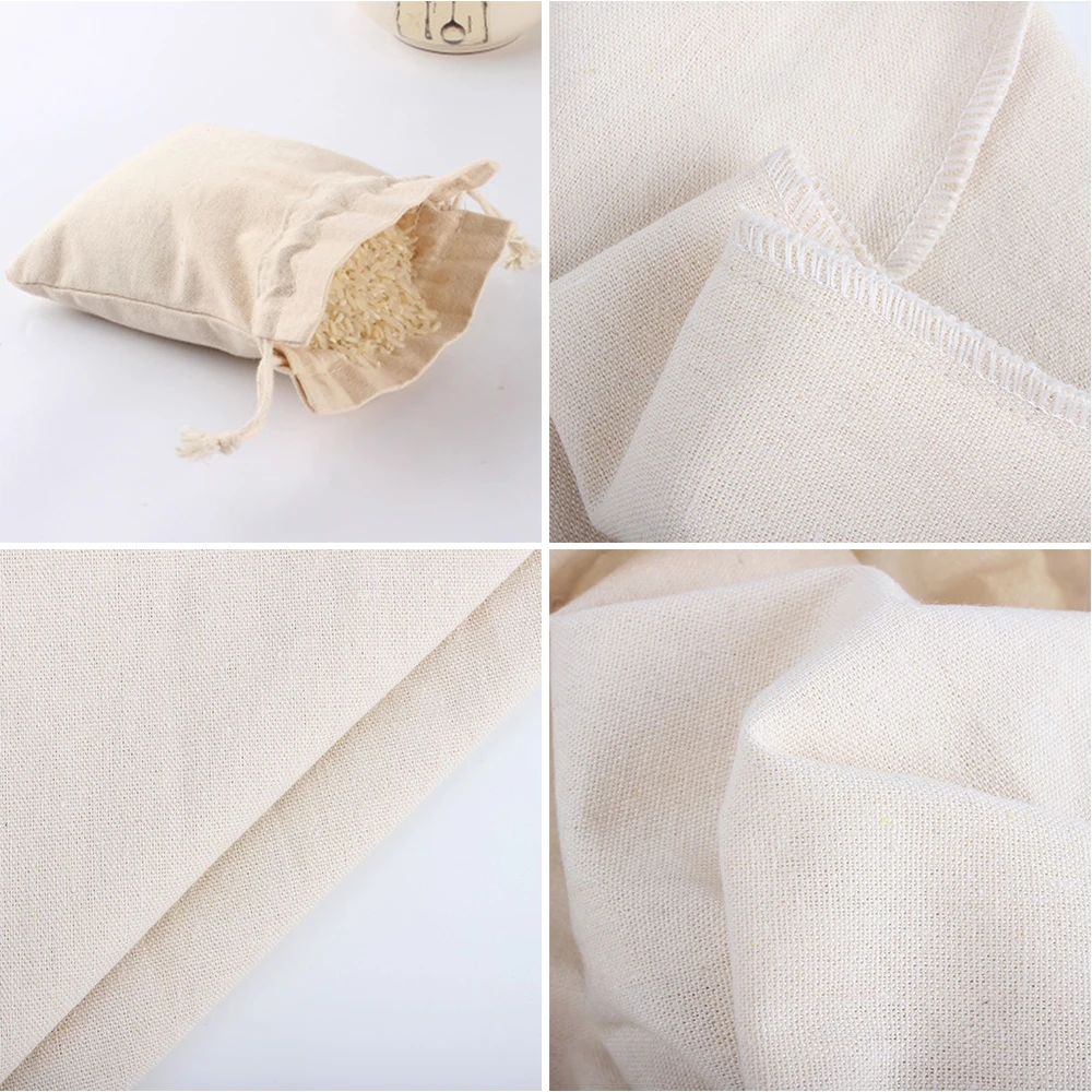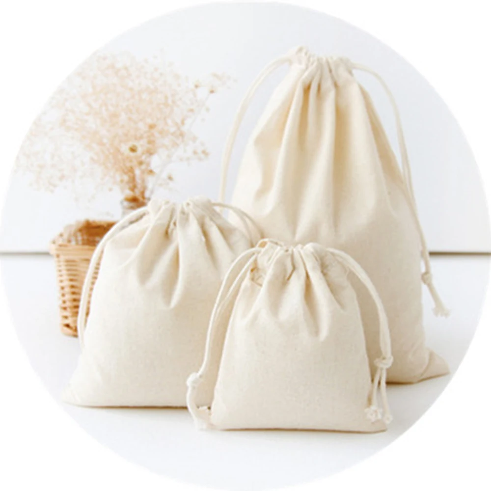 Многоразовые хлопковые подарочные пакеты на шнурке для свадьбы и Рождества, саше для хранения шармов, упаковка для ювелирных изделий, Льняная сумка