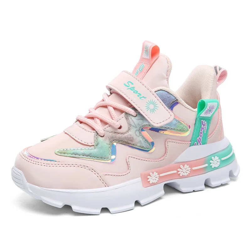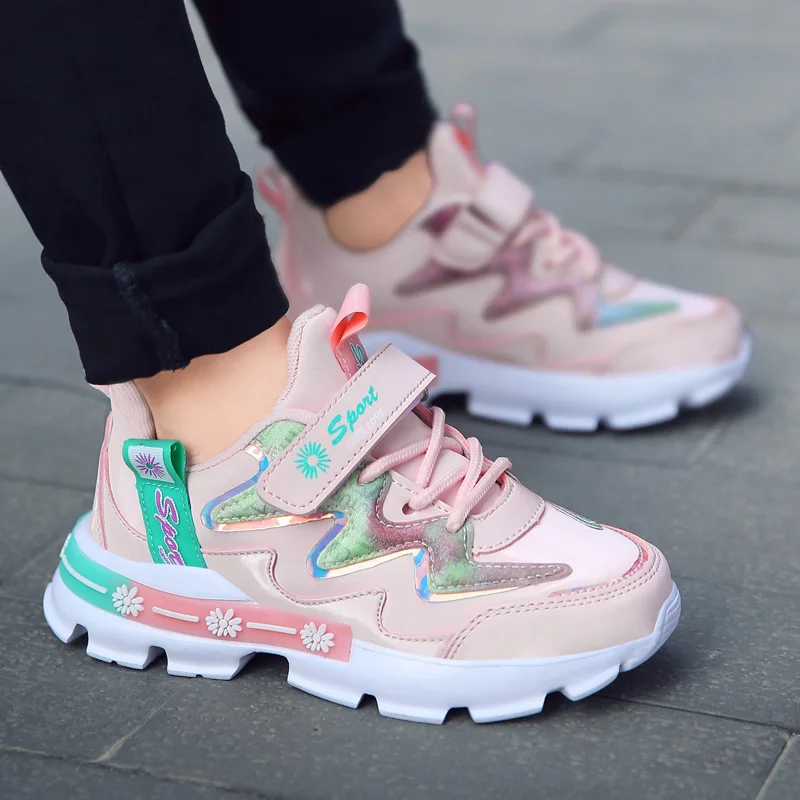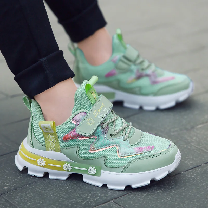 Сетчатые дышащие кроссовки для девочек со шнуровкой Vel cro, детские спортивные повседневные кроссовки для девочек, нескользящая обувь для детей и подростков
