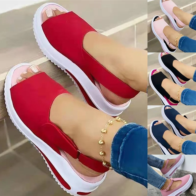 Женские сандалии на плоской подошве, с открытым носком, пляжная обувь на платформе, модная удобная прогулочная обувь, 2021