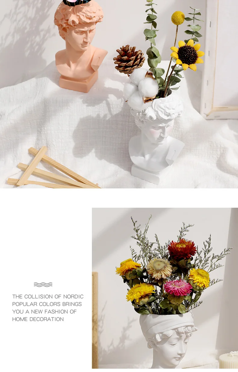 Современный Декор для дома в Северном Европейском стиле, комнатное украшение, портретная ваза, ваза с головой человека, цветочные вазы, украшения из смолы, цветы для дома Давида
