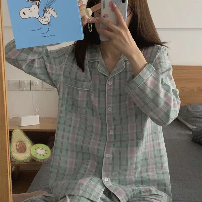 Пижама женская в клетку, цвет в ассортименте, M L XL XXL, 2 шткомплект