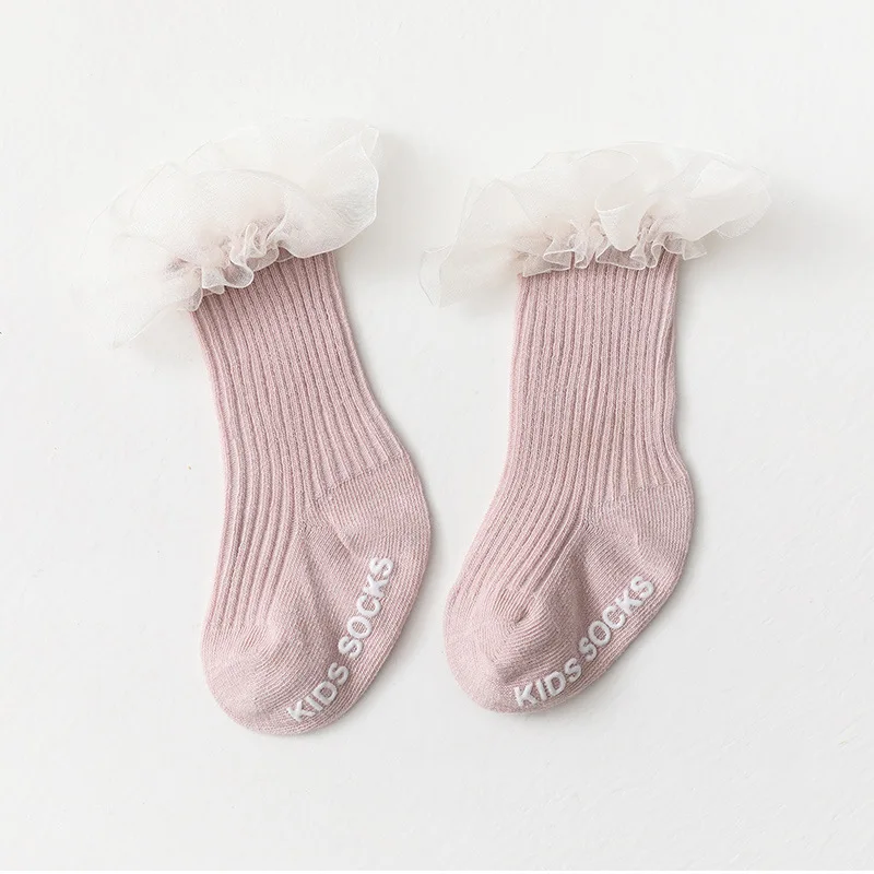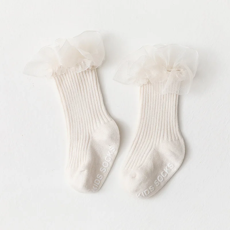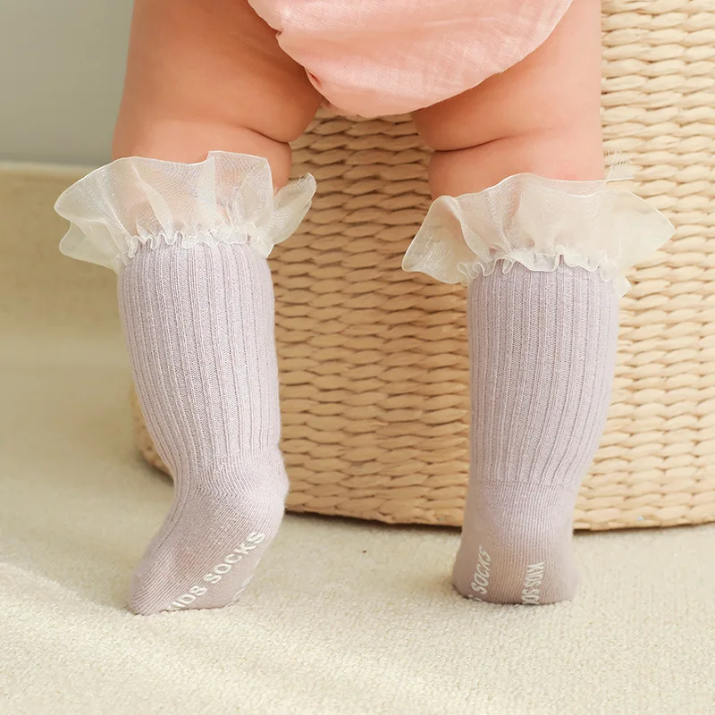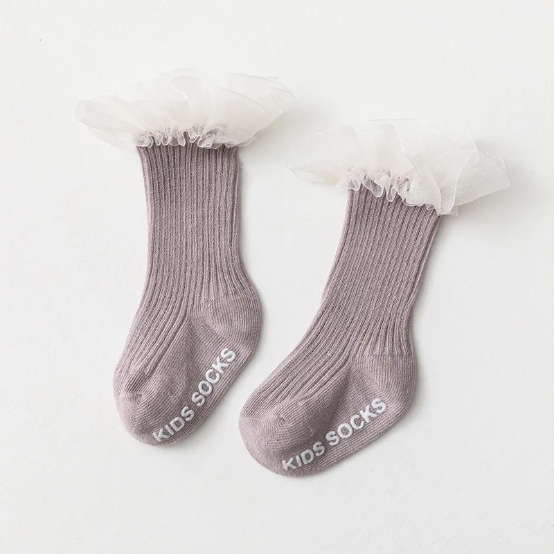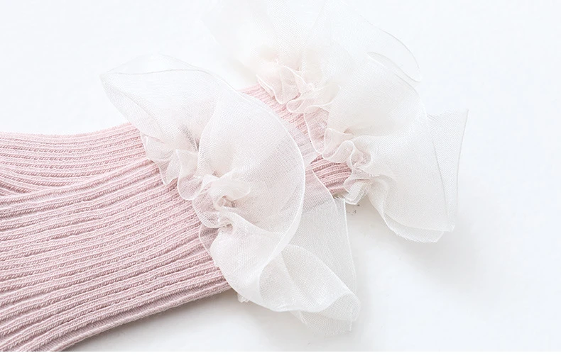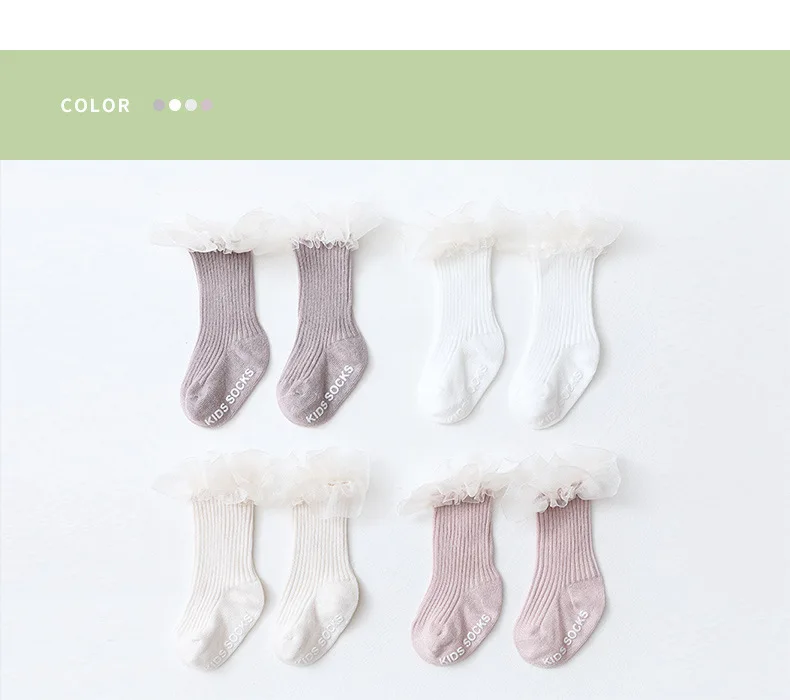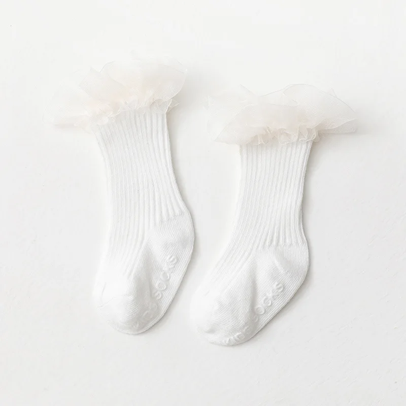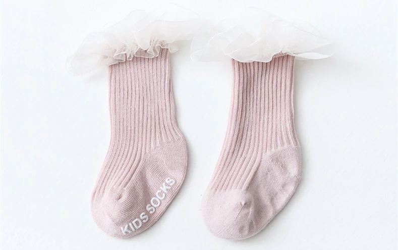 Носки для новорожденных детские гольфы с оборками для девочек хлопковые нескользящие длинные кружевные носки с оборками для малышей от 0 до 3 лет