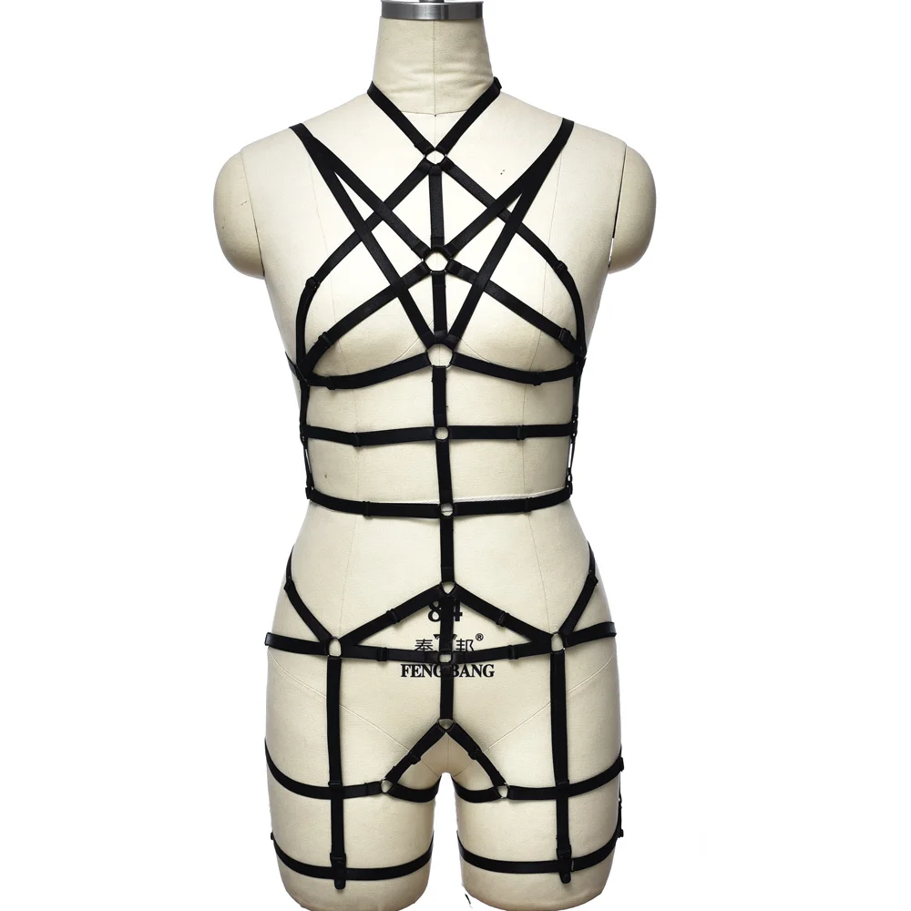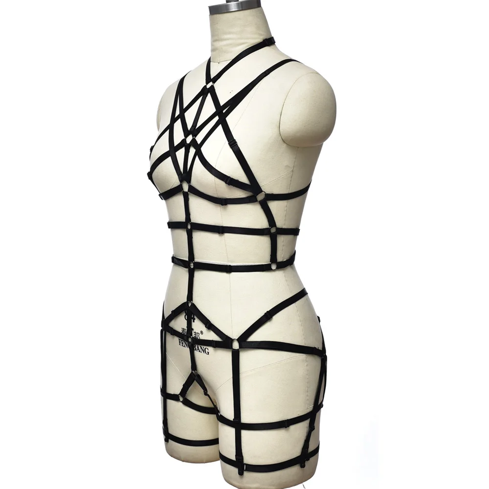 Женское сексуальное нижнее белье, боди, регулируемый бандаж, ремень-портупея, ажурный бюстгальтер, черные готические праздничные чулки, подвязки