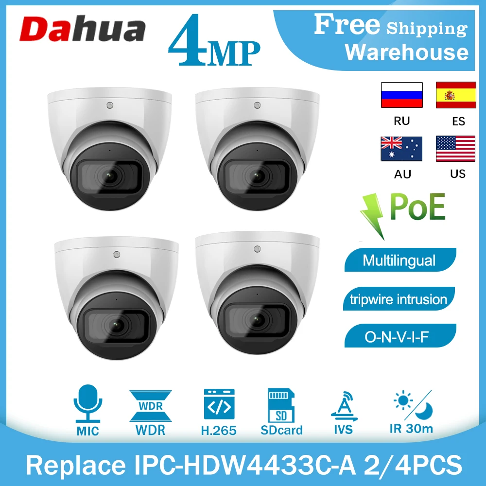 IP-камера Dahua, быстрая, 4 МП, POE, H265, встроенный микрофон, IP67, IVS, наружная купольная камера видеонаблюдения, мониторинг