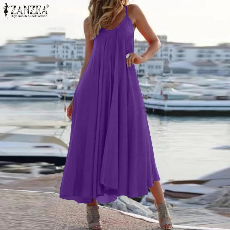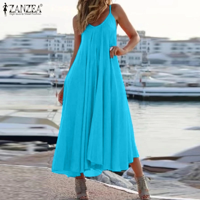 Женское летнее пикантное платье ZANZEA с V-образным вырезом, модное платье без рукавов, праздничные вечерние платья-качели, женское пляжное платье миди, 2021