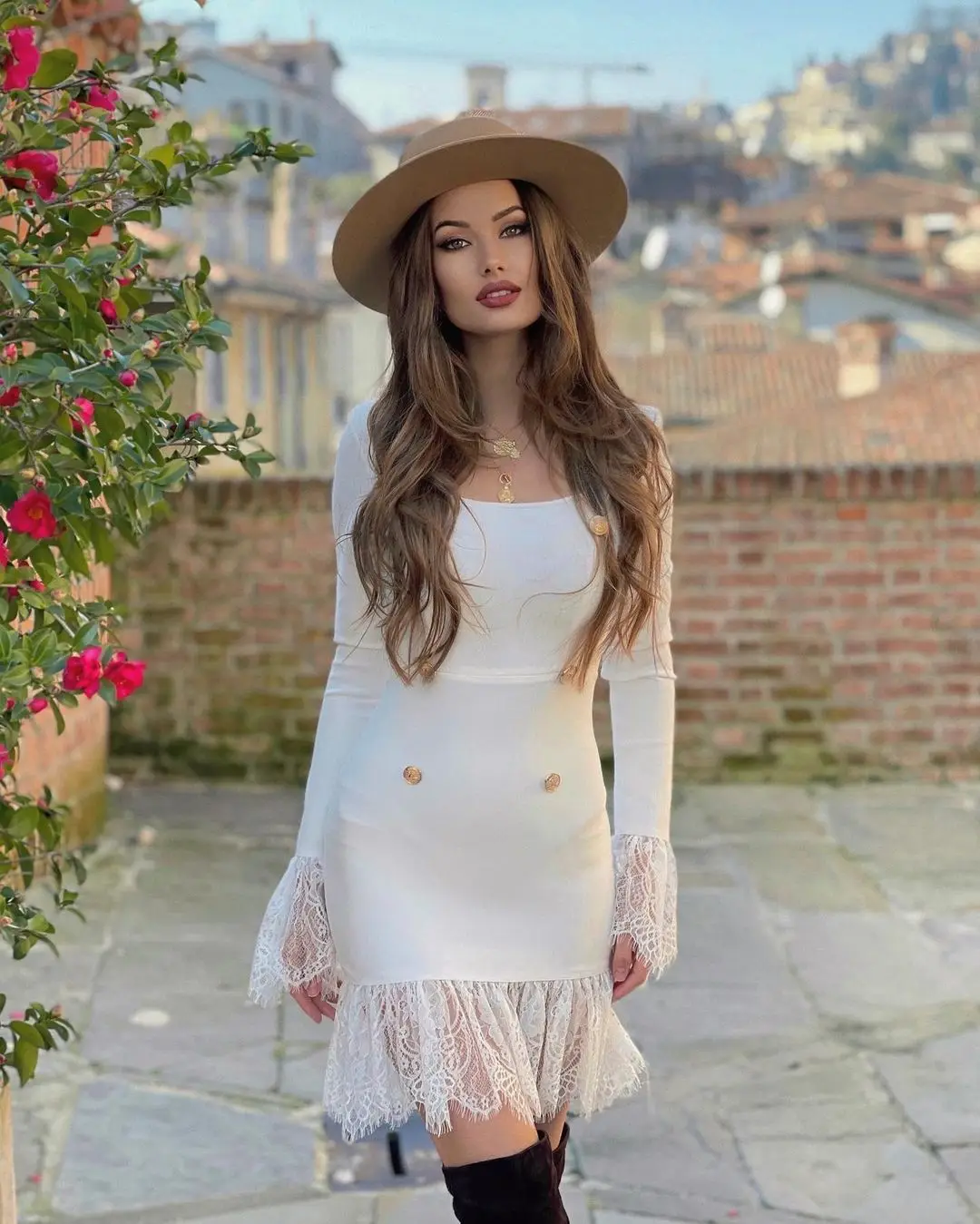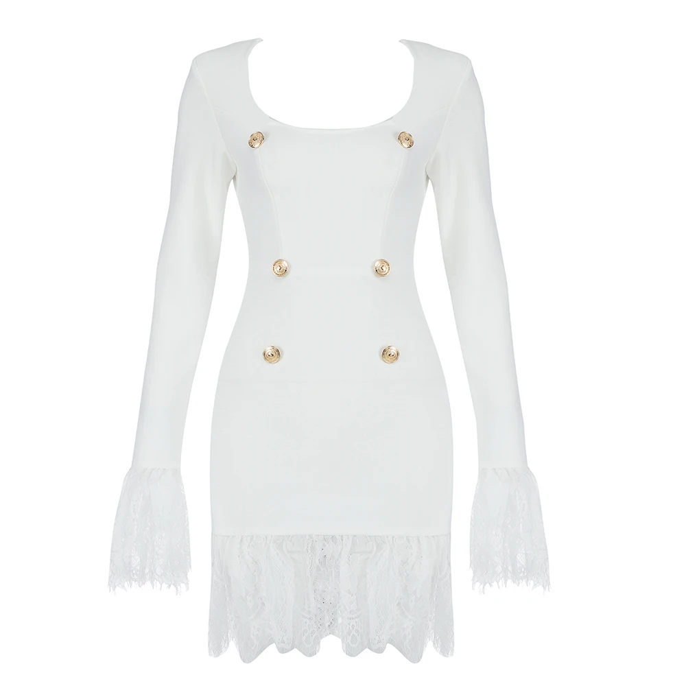 Женская обувь; Сезон весна; Изящные женские длинные рукава белые кружевные ботильоны с кисточками облегающее Бандажное платье 2021 элегантное вечернее платье вечерние Клубные платья Vestidos