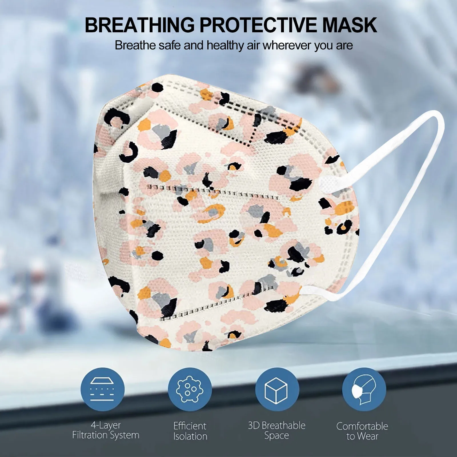 Маска Kn95 для взрослых и женщин, дышащая маска с леопардовым принтом и бабочкой, для лица, 5 шт.