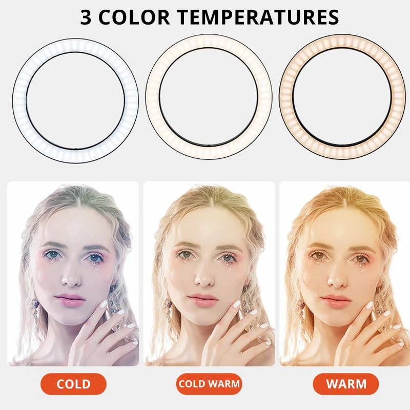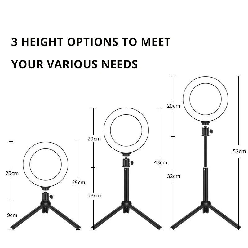 Потоковый светодиодный светильник Три светильник режимов (белый, теплый белый, теплый желтый) Устойчивый Штатив с противоскользящей ножкой 10 уровней яркости освещения Универсальный держатель для мобильного телефона (2,36 "до 3,35" в ширину) Регулируемая высота стойки (от 14 до 47 дюймов) Быстрая и простая сборка, разборка