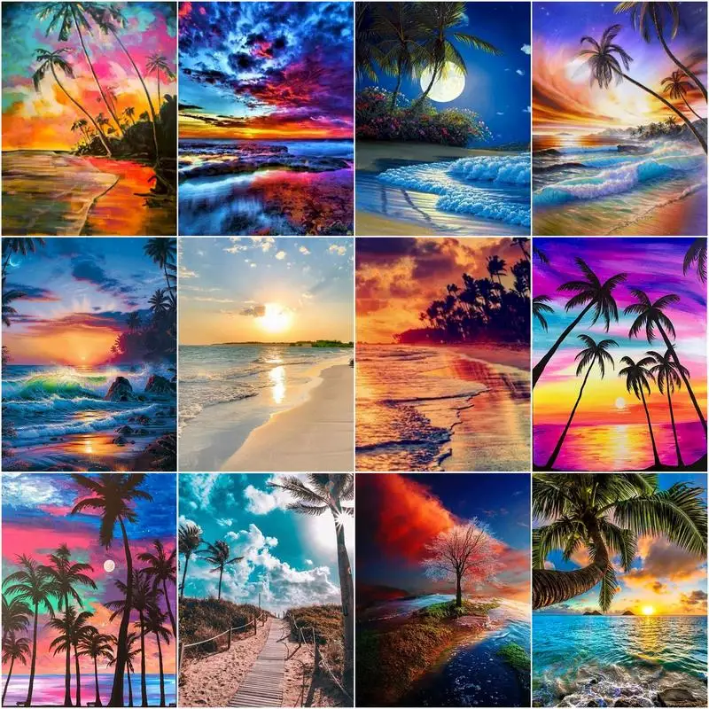 GATYZTORY Diy картина по номерам приморский пляж кокосовое дерево, холст для живописи окраска пейзаж Ручная роспись подарок настенные украшения