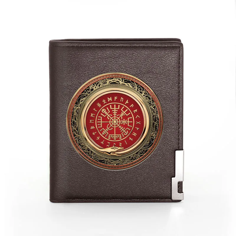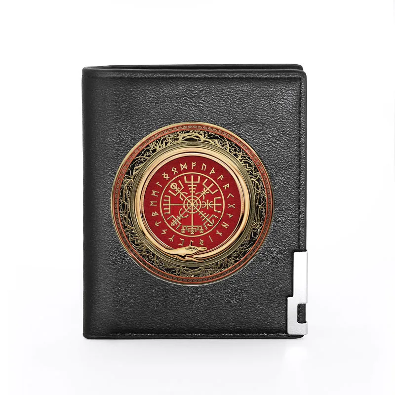Высококачественный классический кожаный кошелек с принтом знаков викингов, держатель для кредитных карт, короткий кошелек