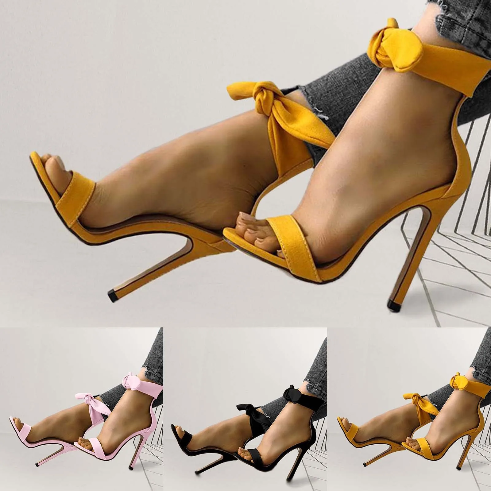 Летние женские туфли с украшением-бантом, тонкий высокий каблук однотонные Цвета пикантная обувь без шнуровки, с открытым носком туфли для клубов вечеринок; Женские сандалии; Sandalias De Mujer; Большие размеры #35