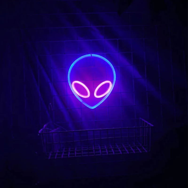 Неоновая вывеска в форме инопланетянина, настенные подвесные светил...