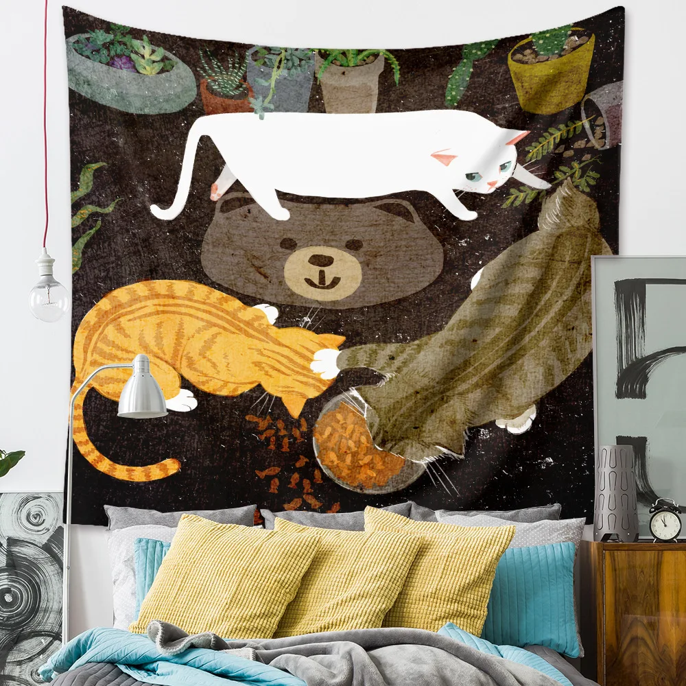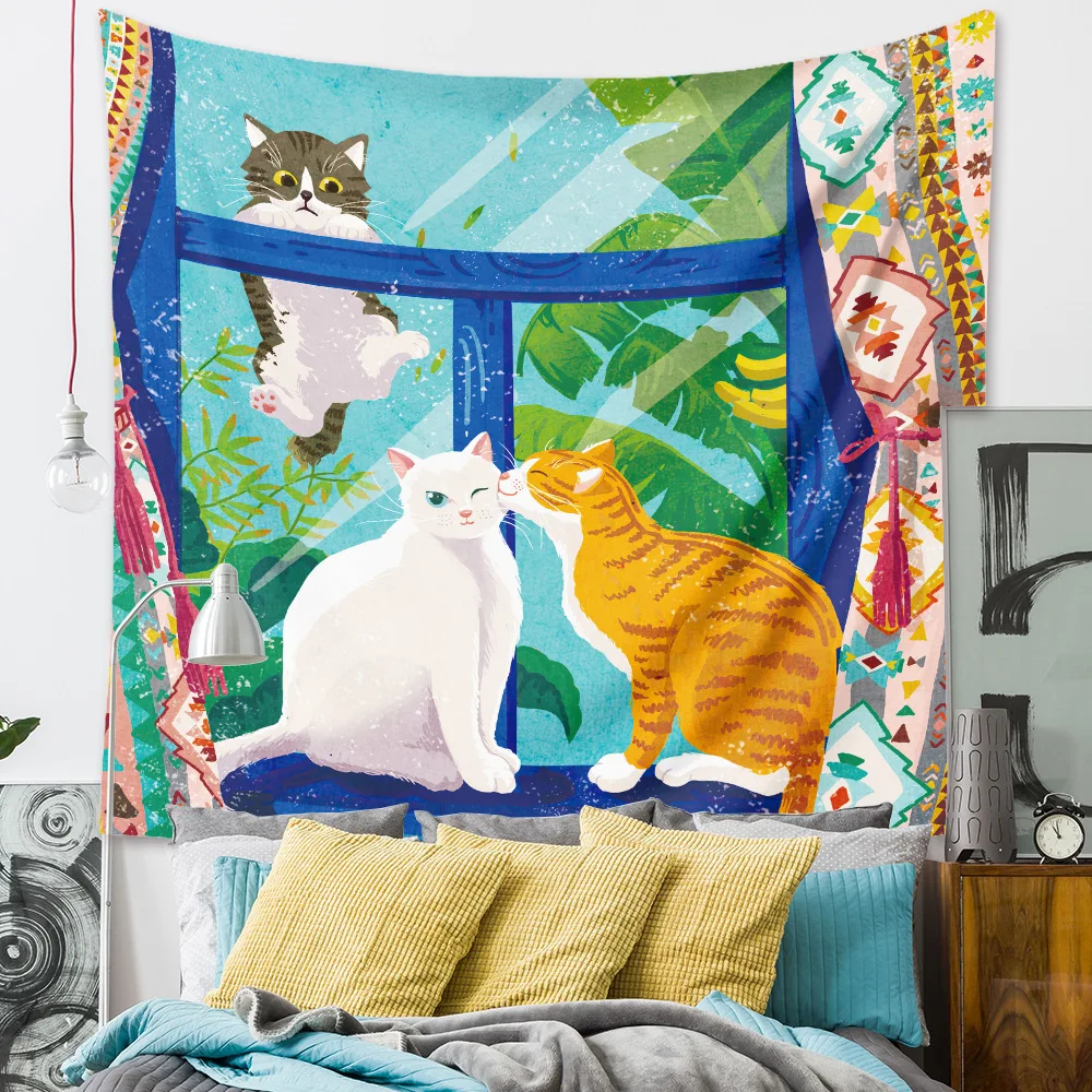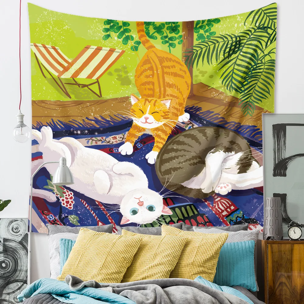 Гобелен с мультяшным милым котом, Настенный декор для детской комнаты, спальни, хиппи, Триппи, Wll гобелен, цветные настенные ковры с животными