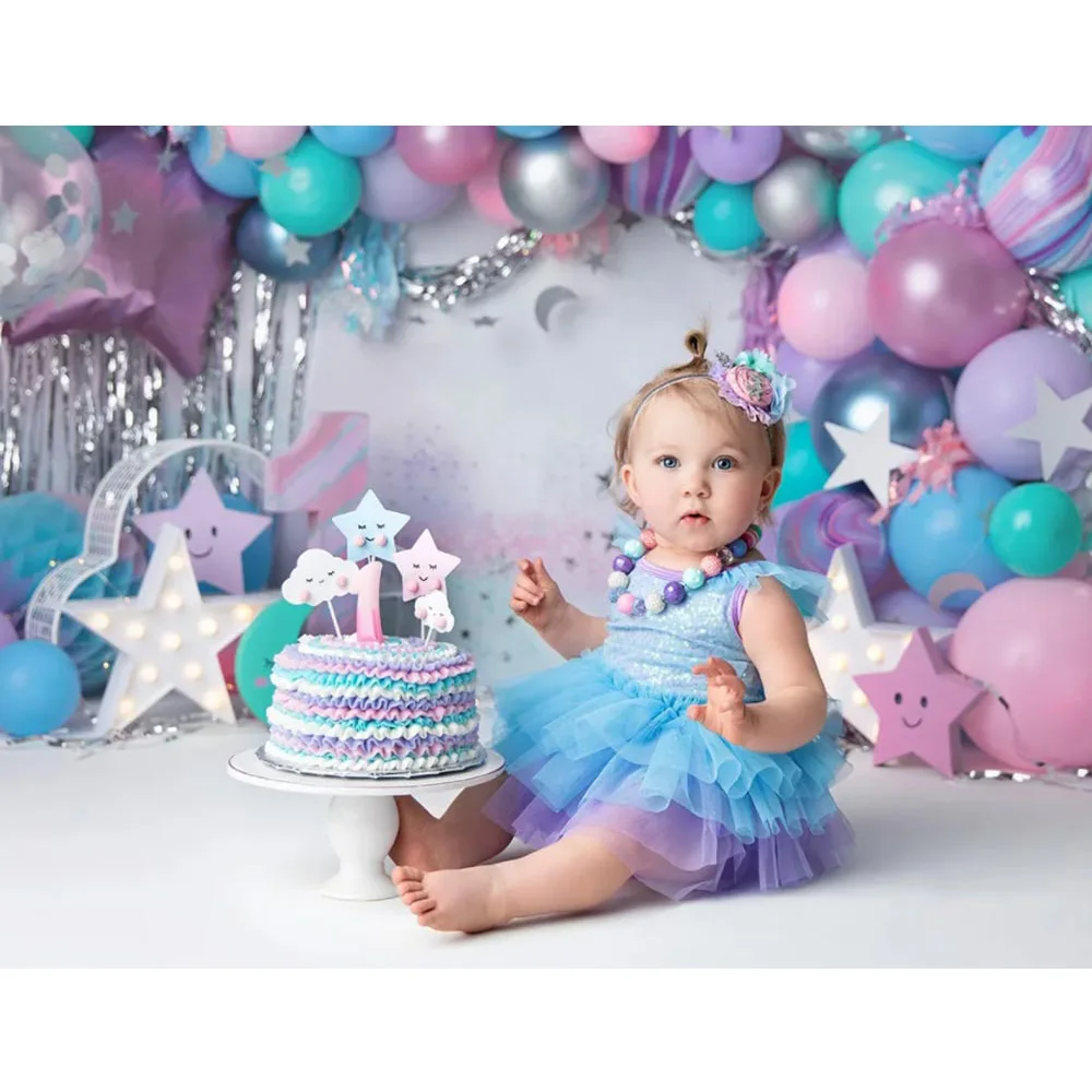 Фон для студийной фотосъемки с изображением торта и воздушных шаров