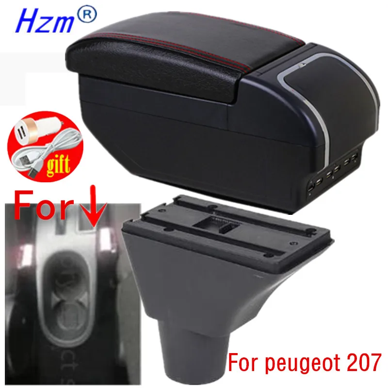Подлокотник для peugeot 207 с USB-зарядкой, двухслойный центральный подлокотник для хранения, подстаканник, пепельница, аксессуары