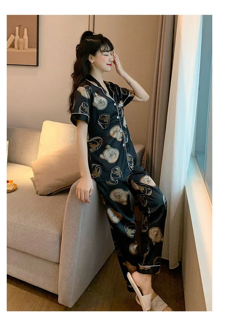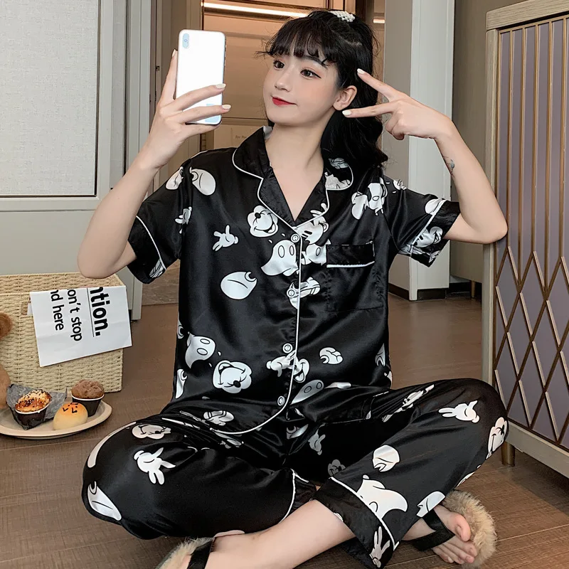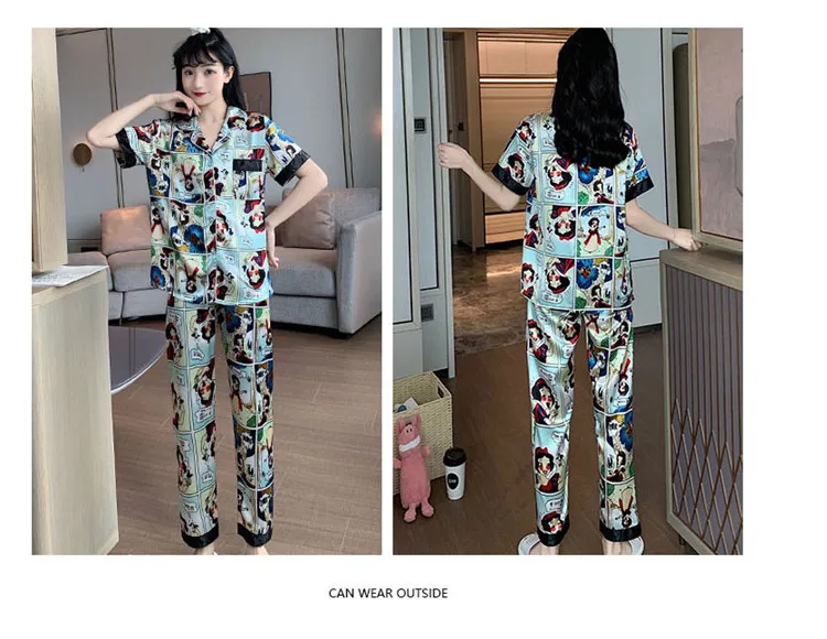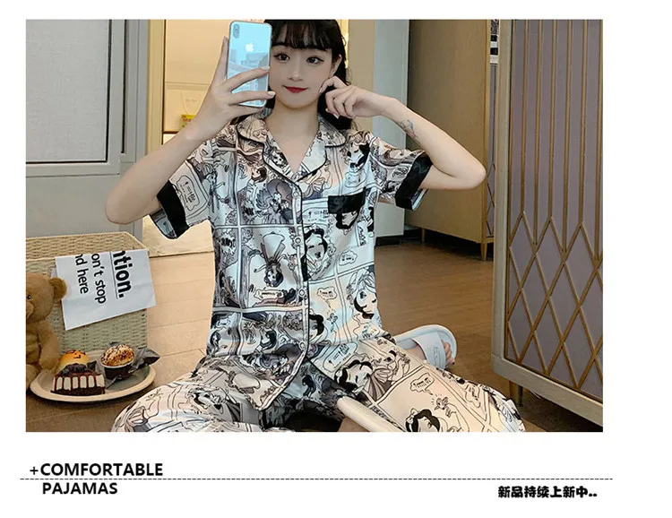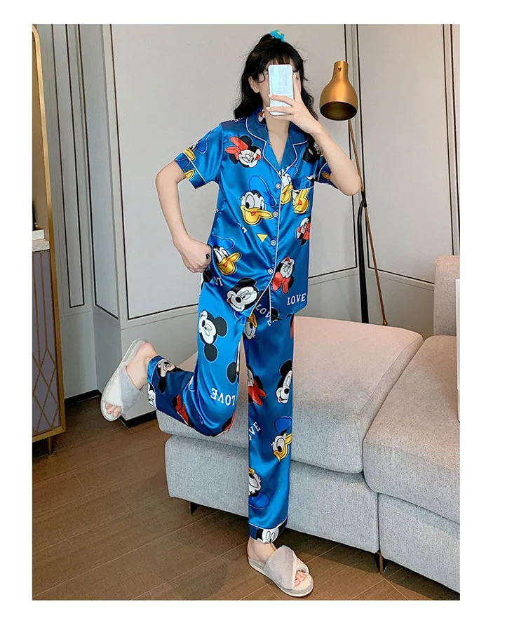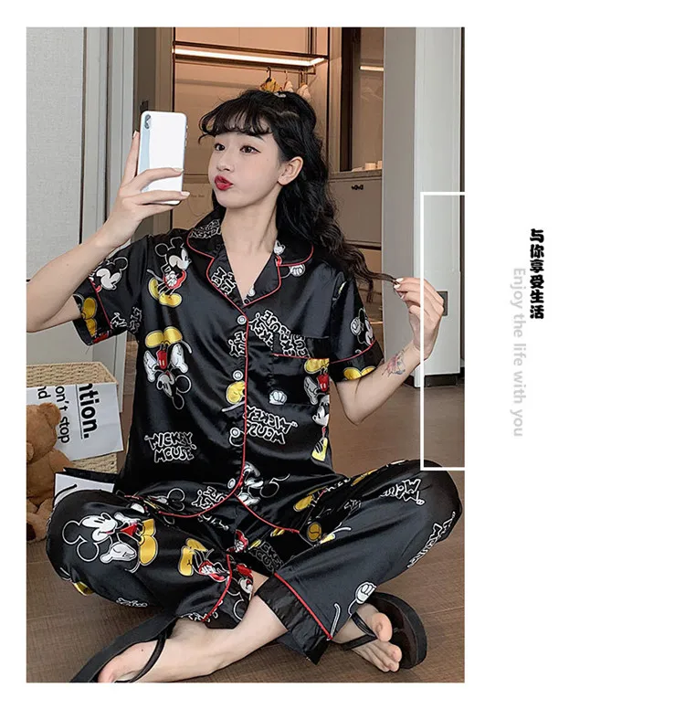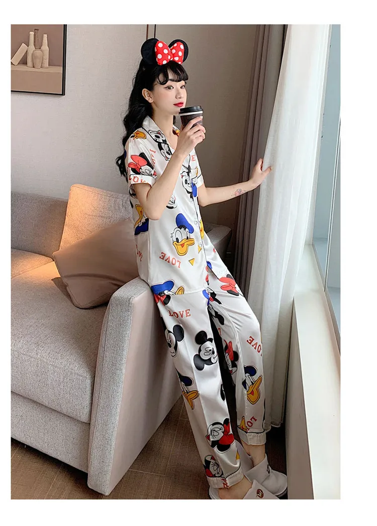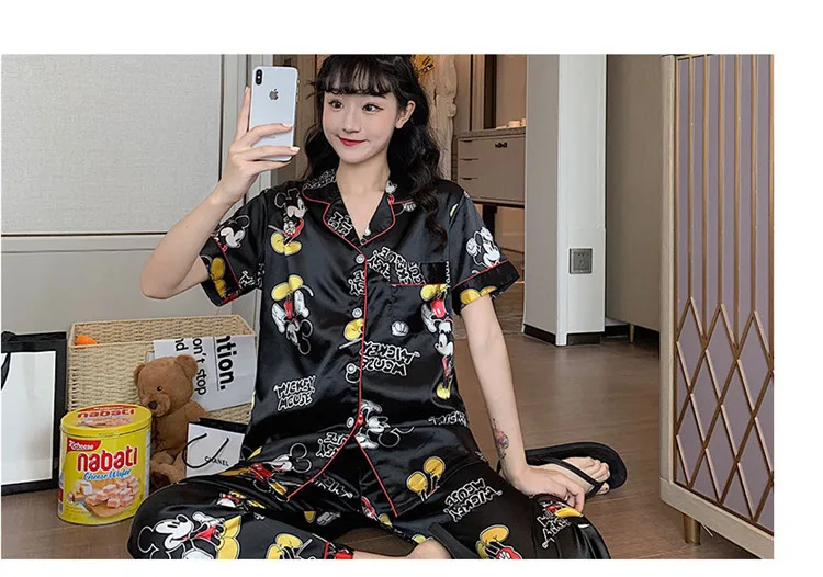 Пижама женская с принтом Микки и Минни, с коротким рукавом