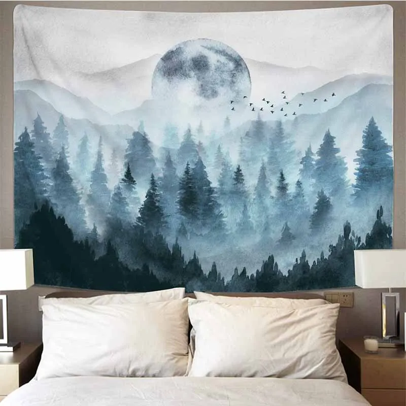 Туманный лес горный гобелен настенный природный пейзаж хиппи гобелен тканевый фон художественный Декор Настенный Ковер Тонкий чехол для дивана