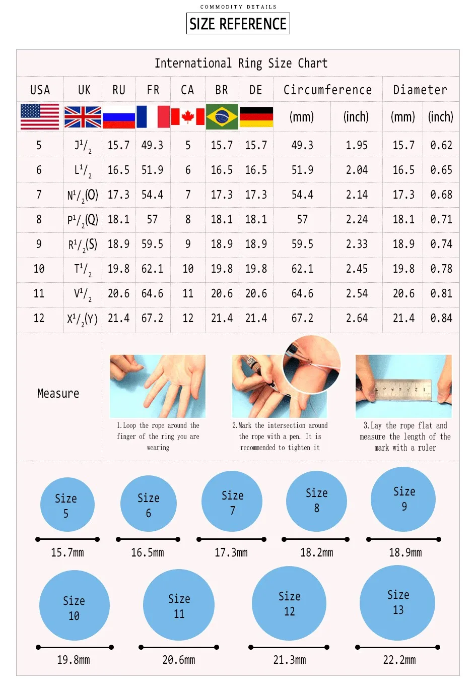 Размер кольца:6 #7 #8 #9 #10 #11 #12 #13 # (размер США)