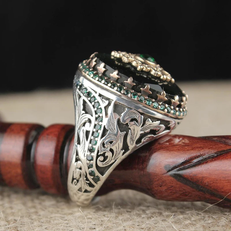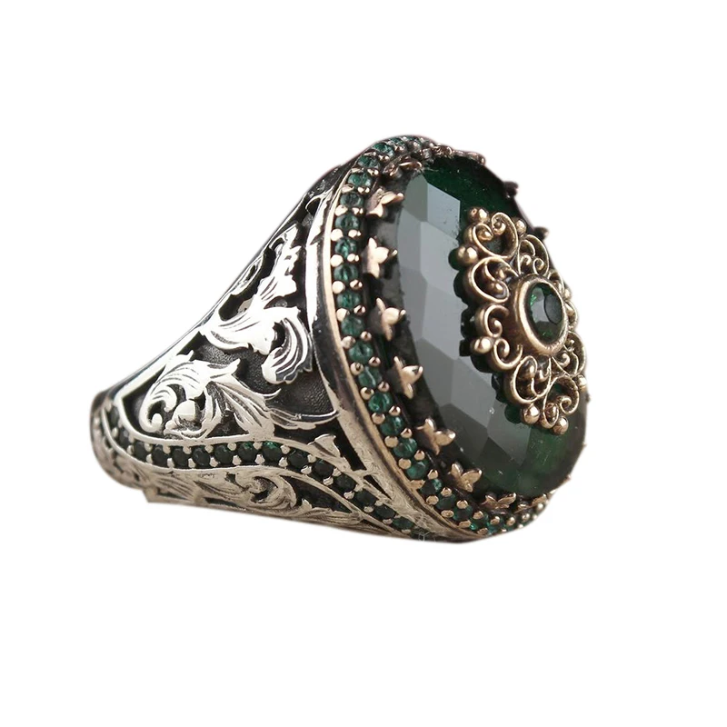 Винтажные большие с зеленым камнем овальной формы кольца для мужчин...