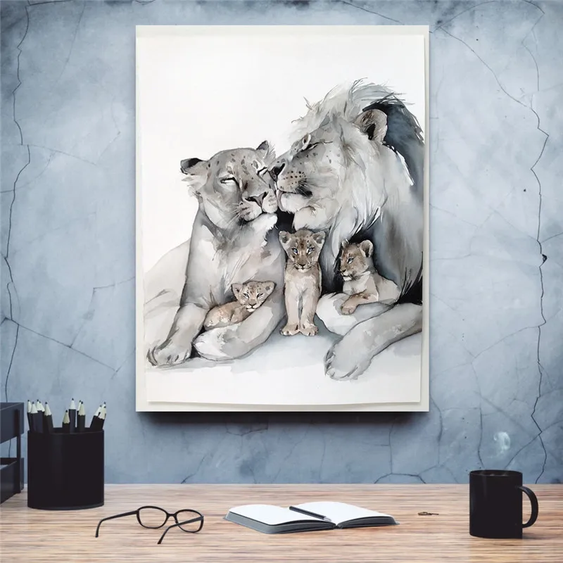 Модульная Картина на холсте, с принтом семейства Львов, картина, мультяшный плакат, современные настенные картины для гостиной без рамы