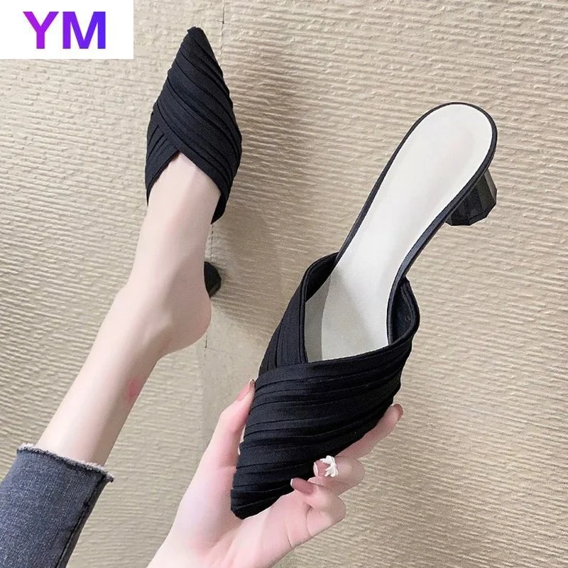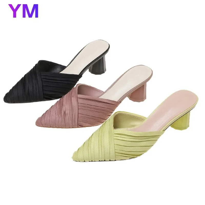 Шлепанцы женские летние с острым носком, уличные сандалии на каблук...