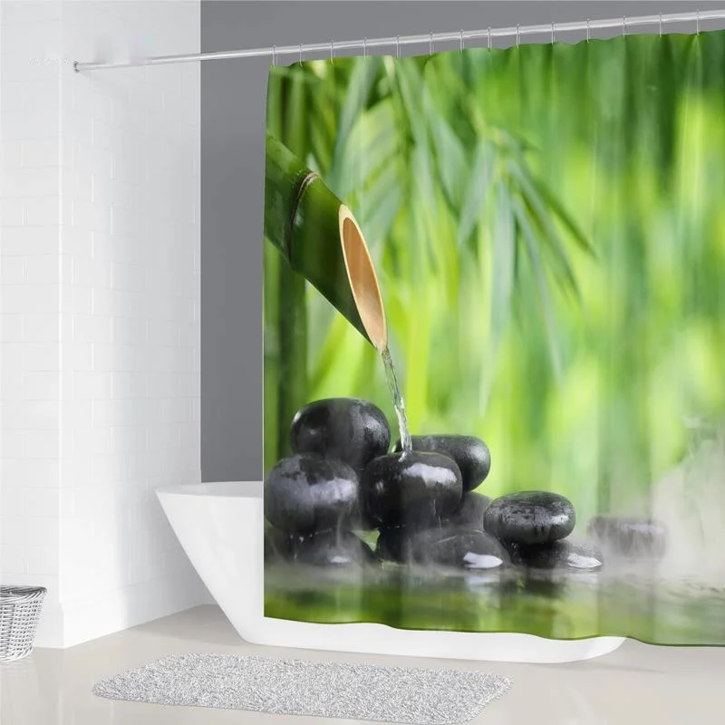 Новая дзен душевая занавеска украшение для ванной 3D бамбуковая бегущая вода зеленый бамбук Будда душевая занавеска Водонепроницаемая занавеска от плесени
