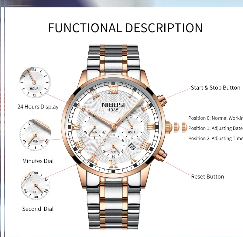 Часы наручные NIBOSI мужские с хронографом, брендовые классические ...