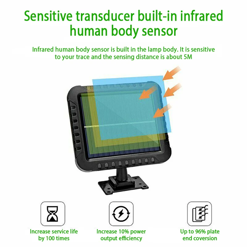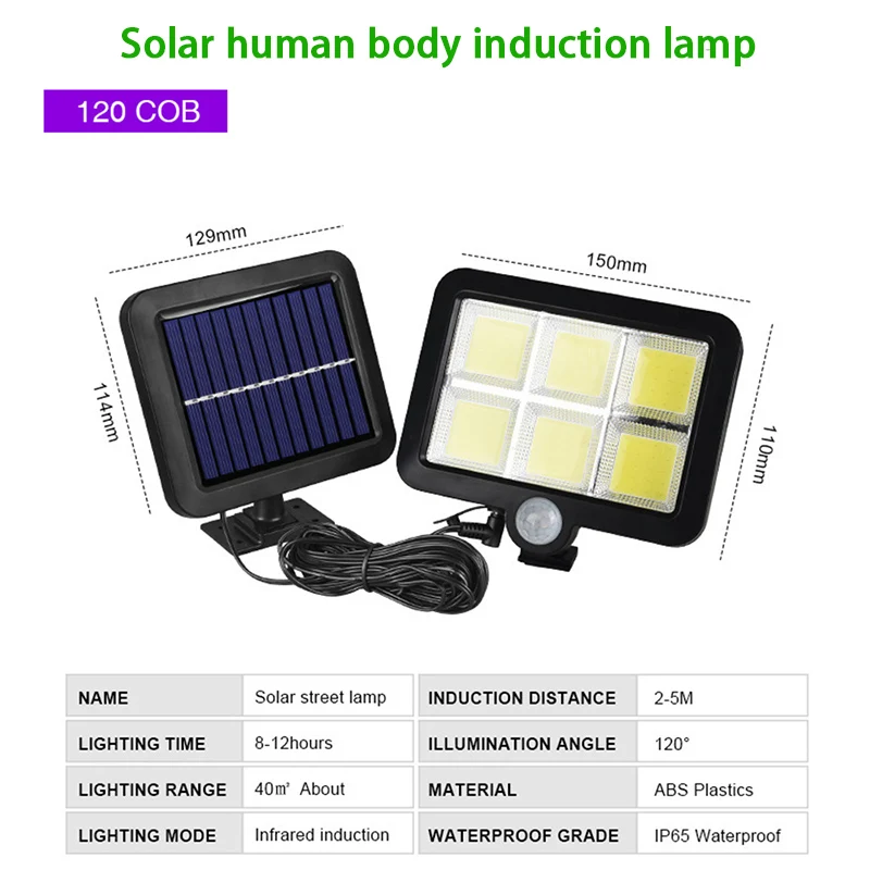 1. Легко установить, просто прикрутите изделие на стене. 2. Солнечная энергия, уличная лампа с солнечной батареей, используя энергию солнца для вашего ночного освещения. 3. Включение выключателя светильник в течение дня не включено, только в ночное время Включите переключатель, когда датчик обнаруживает, что тело человека может получить светильник высокой яркости. 4. IP65 водонепроницаемая, термостойкая Солнечная лампа, подходит для большинства типов погоды. 5. Солнечные наружные огни освещают Ваш сад, двор, проход, крыльцо, двор или подъездную дорожку и т. д. 6. Продукт оснащен 5 метровой солнечной панелью, COB 120 лампой, сильной яркостью, водонепроницаемостью на открытом воздухе.