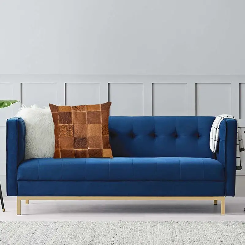 Коричневый клетчатый чехол из воловьей кожи, наволочка для дивана, домашний декоративный квадратный чехол для подушки с животным мехом и кожаной текстурой 40x40