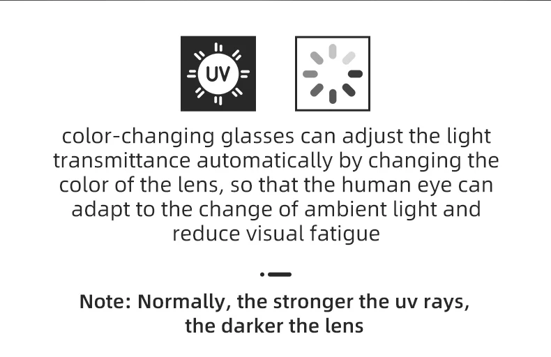 1. Время смены цвета: зима-1 минута, лето-40 секунд. 2. Скорость зависит от солнечного света и интенсивности УФ-излучения! 3. Степень обесцвечивания зависит от интенсивности ультрафиолетового светильник ения и температуры. (Если ультрафиолетовое излучение и температура низкие, скорость обесцвечивания замедляется).