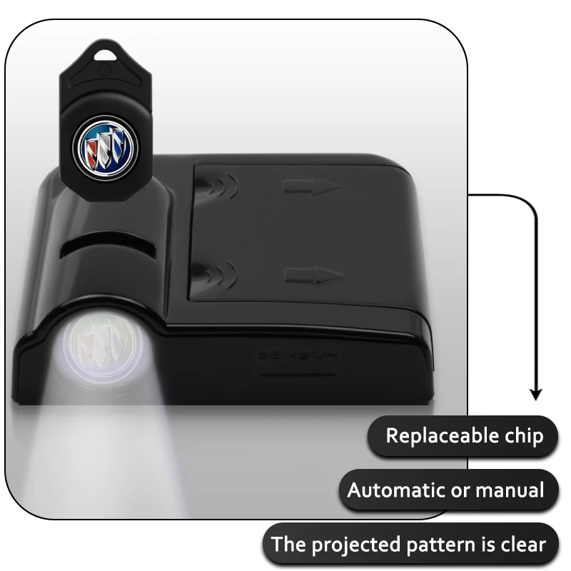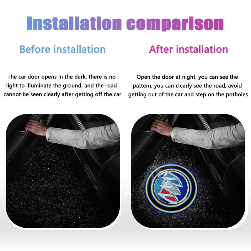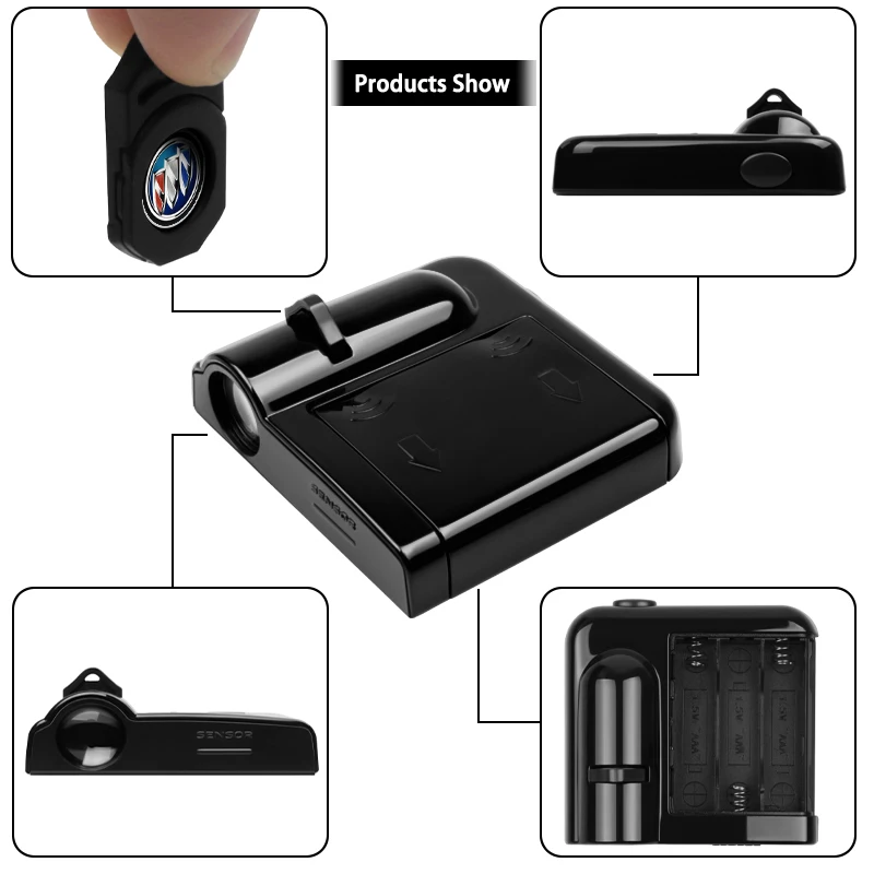 ОсобенностиВысокая эффективность и энергосбережение.Отсутствие загрязнения, отсутствие шума, отсутствие электронных помех.Лидирующие тенденции источников автомобильного освещения.Как украшенный светильник ghost shadow, когда вы остановите машину, тени могут быть показаны на дороге, что приносит больше удовольствия от вождения водителей.Питание от 3 батареек AAA (не входят в комплект).Ослепляющий светильник с логотипом и сигнальный светильник будут отображаться на земле, когда вы откроете дверь автомобиля, и он выключится, когда вы закроете дверь.Количество:2 светодиодных прожектора (батареи не входят в комплект)