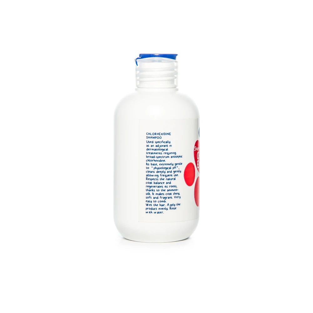 Глубоко очищающий и дезинфицирующий шампунь с хлоргексидином для борьбы с кожными инфекциями. Масло чайного дерева защищает от микробов и грибков, обладает антисептическими и реструктурирующими свойствами. Аминокислоты из шелка увлажняют, защищают и восстанавливают структуру шерсти, а пшеничный белок укрепляет её и придаёт объём. Шампунь нейтрализует неприятные запахи, глубоко очищает и смягчает шерсть. Сбалансированная формула для всех типов шерсти.