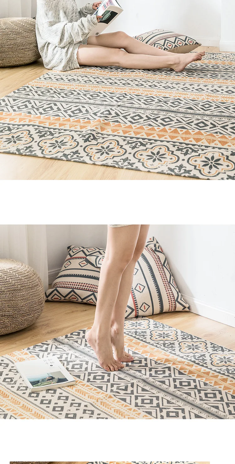 Хлопковое белье ретро-ковер для гостиной в стиле бохо, этнические Противоскользящие коврики для спальни, Полярный напольный коврик, татами, молитвенные коврики, ковры