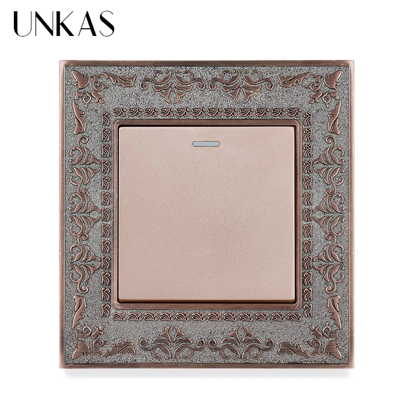 UNKAS 1 2 3 4 Gang 1 / 2 Way настенный светильник переключатель вкл./выкл. Серый 4D панель с тиснением Ретро цинковый сплав роскошный проход через серый 86 мм