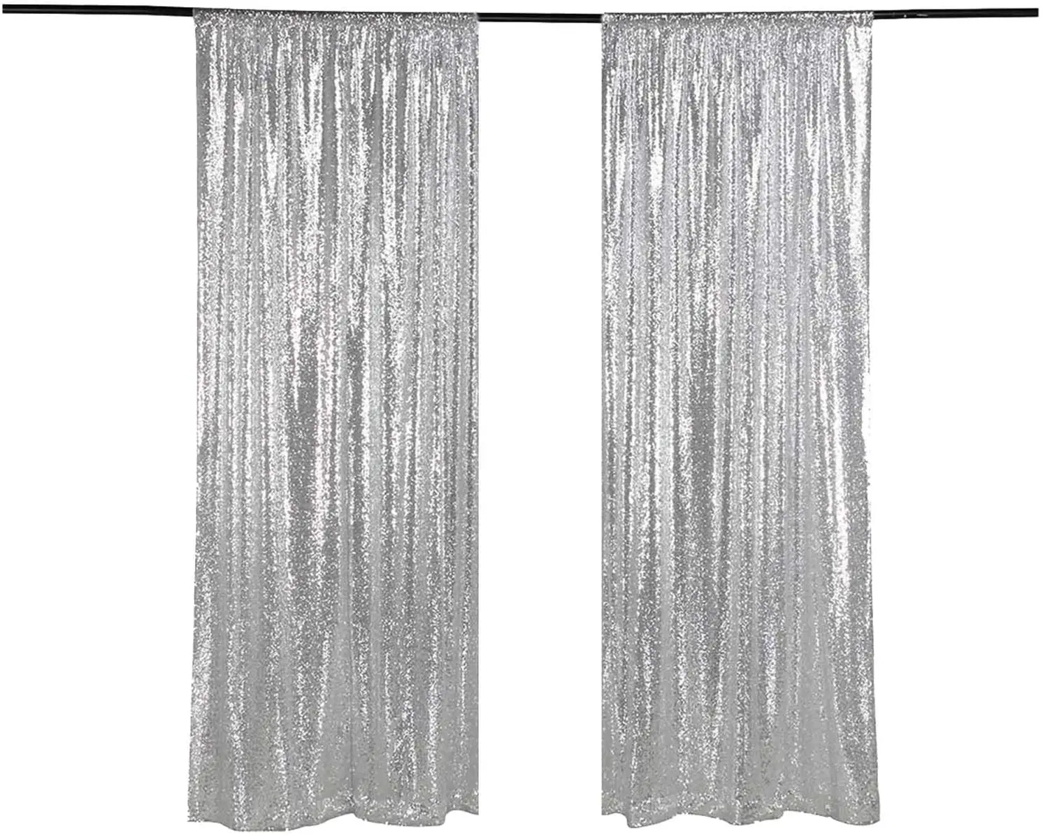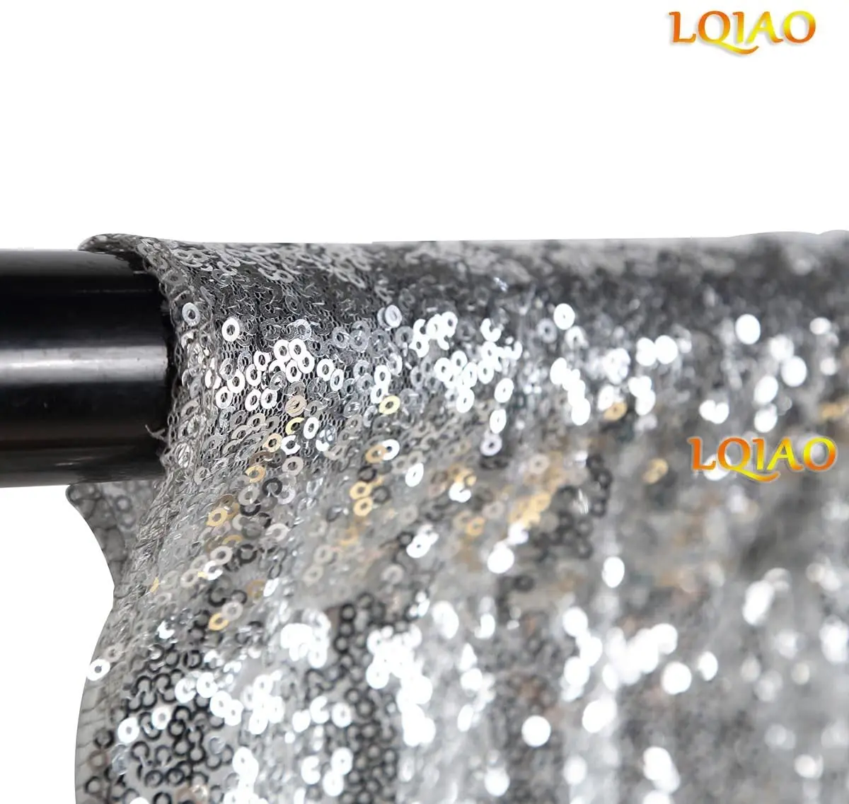 Блесток фон Шторы Панель 2x8FT-Silver блесток фон для фотосъемки с изображением Шторы для вечерниеукрашение домашних штор Шторы украшения 2 шт. карман