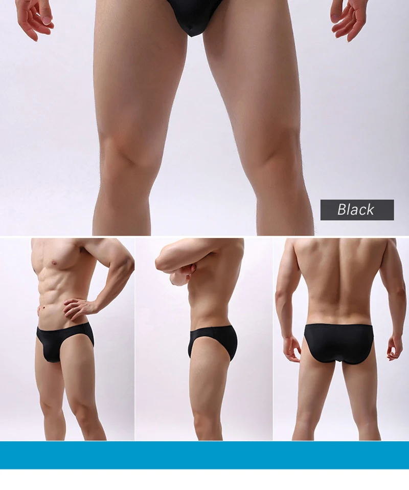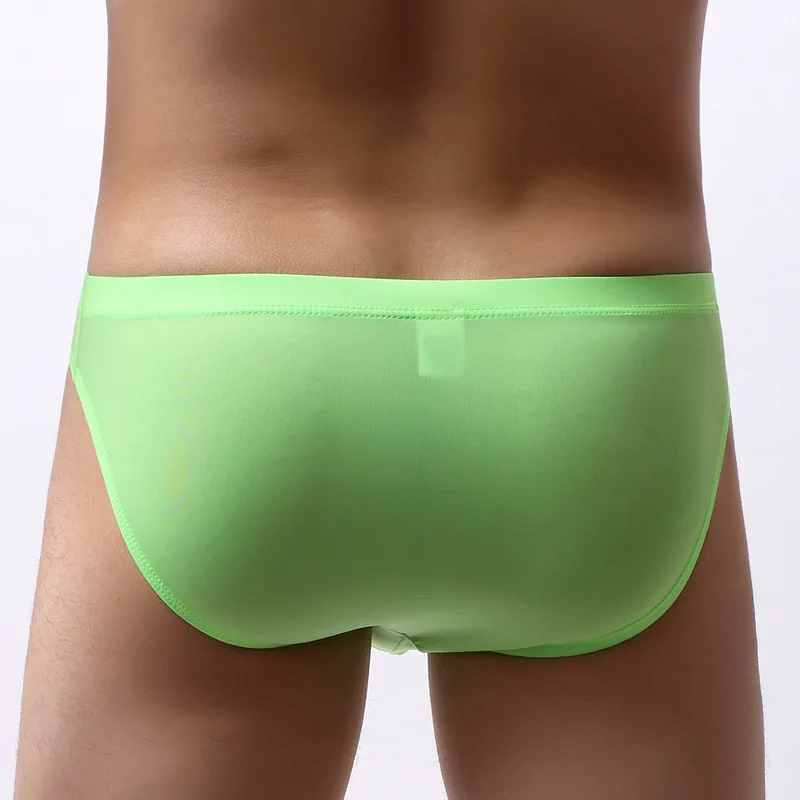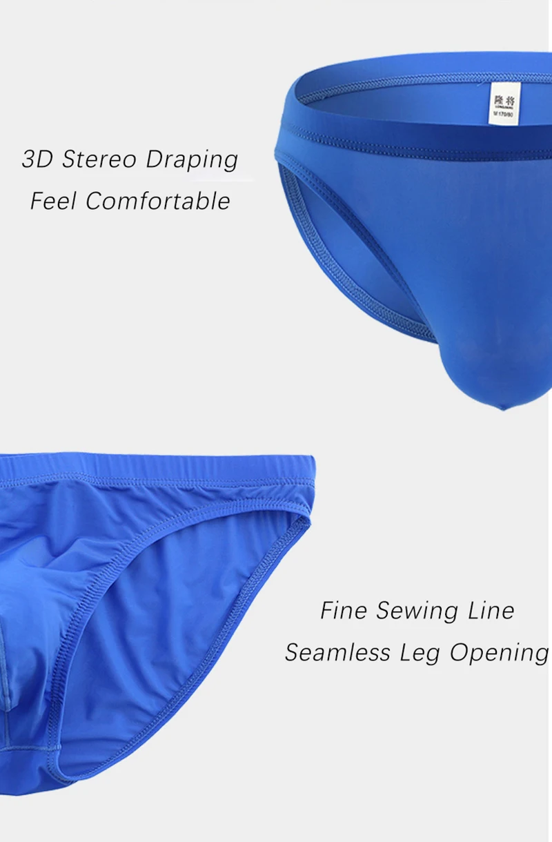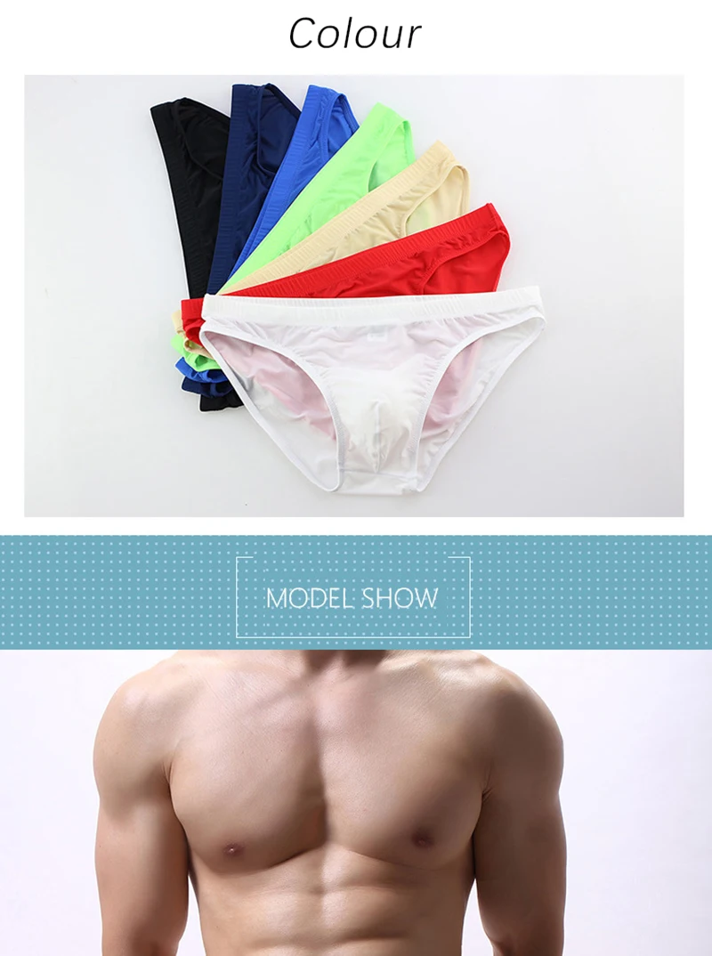 Трусы мужские шелковые, бесшовные, тонкие, со средней посадкой, с мешочком, лето прозрачный Гладкий