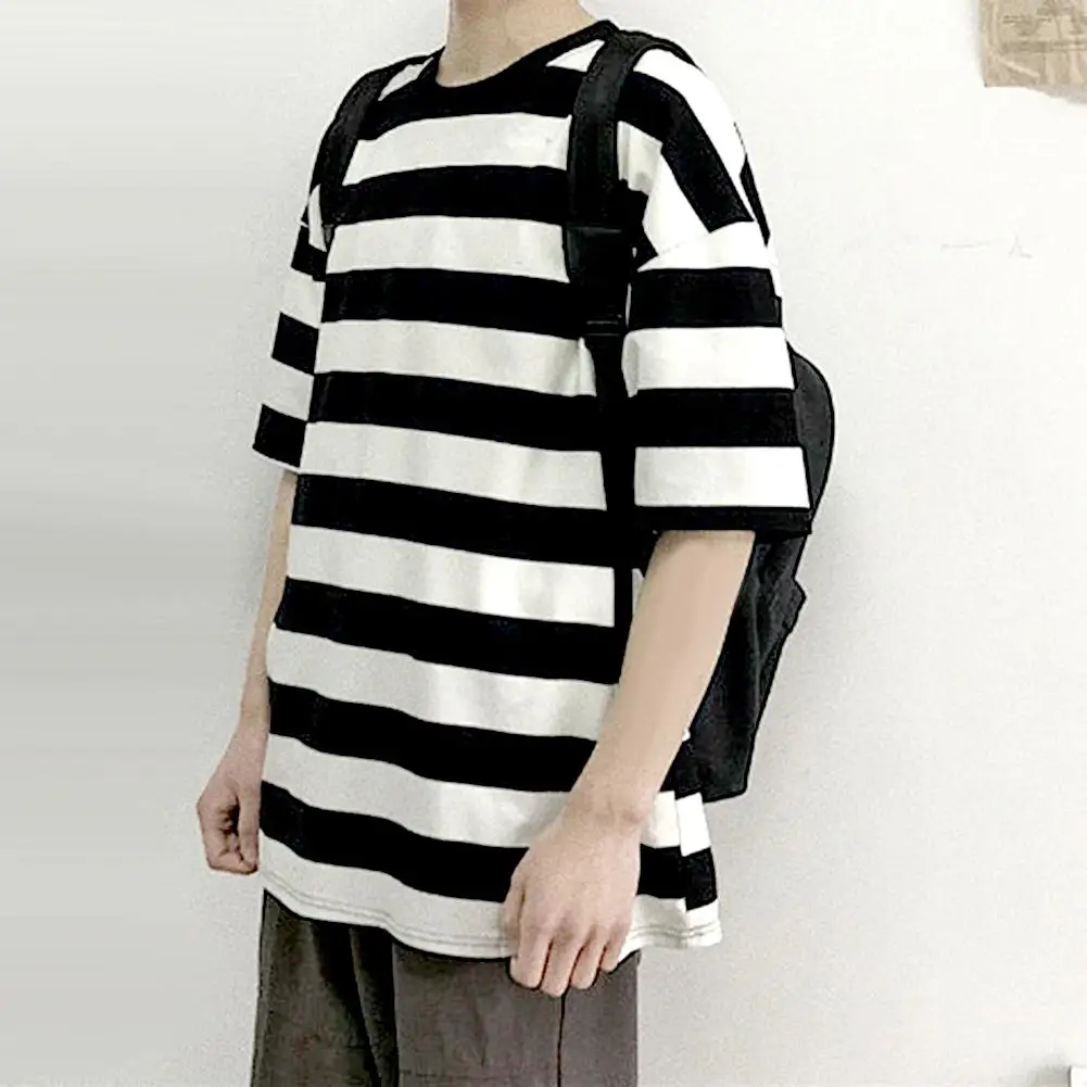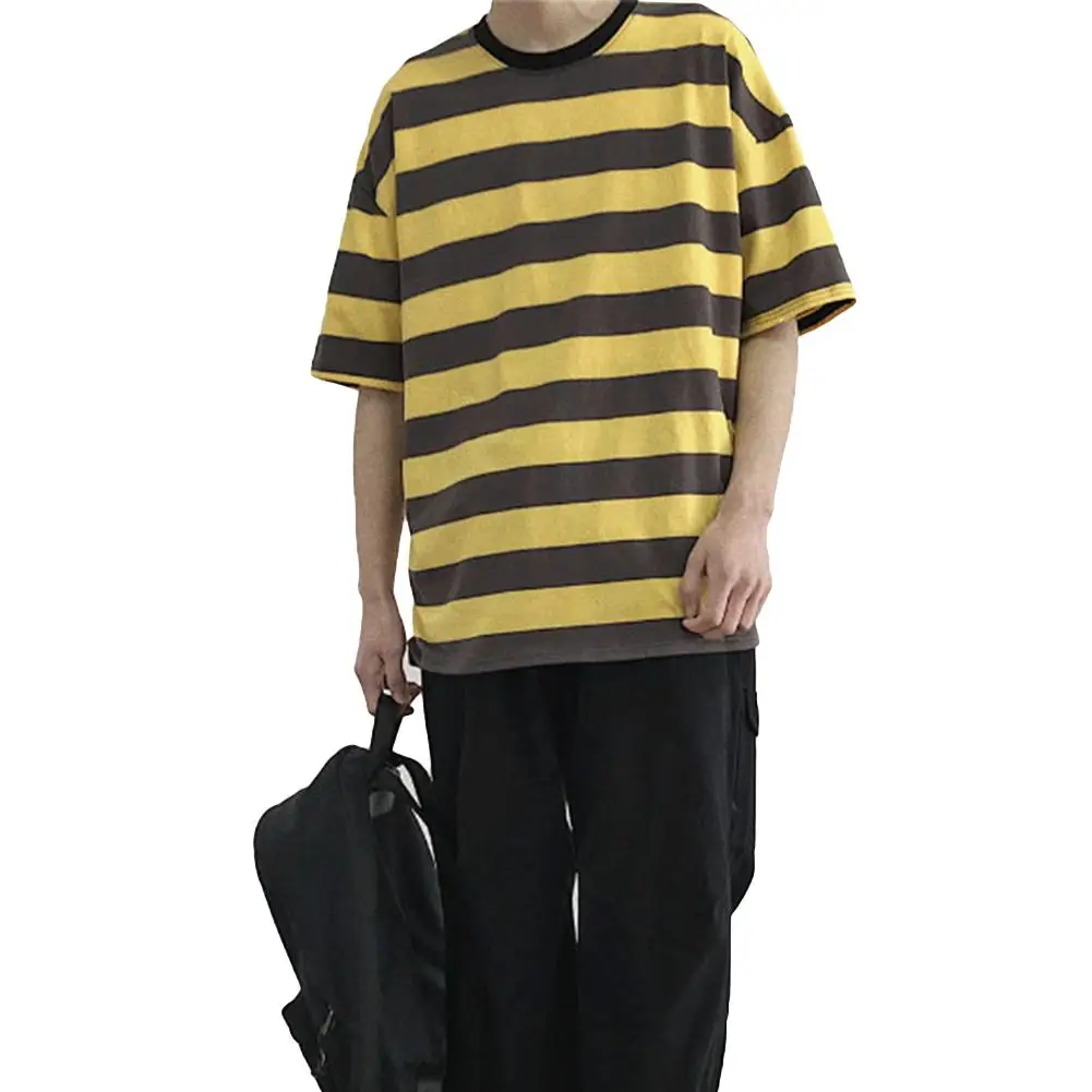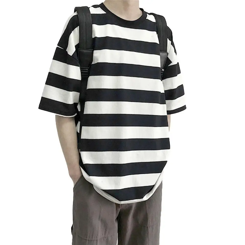 Футболка мужская с круглым вырезом, Стильная хлопковая Повседневная Свободная рубашка с короткими рукавами, с горизонтальными полоская2021