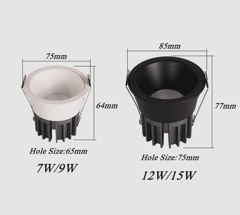 Утопленный антибликовый COB светодиодный светильник с регулируемой яркостью, 7 Вт, 9 Вт, 12 Вт, 15 Вт, светодиодный светильник точечные потолочные светильники, 85-265 В переменного тока, фоновые светильники в, внутреннее освещение