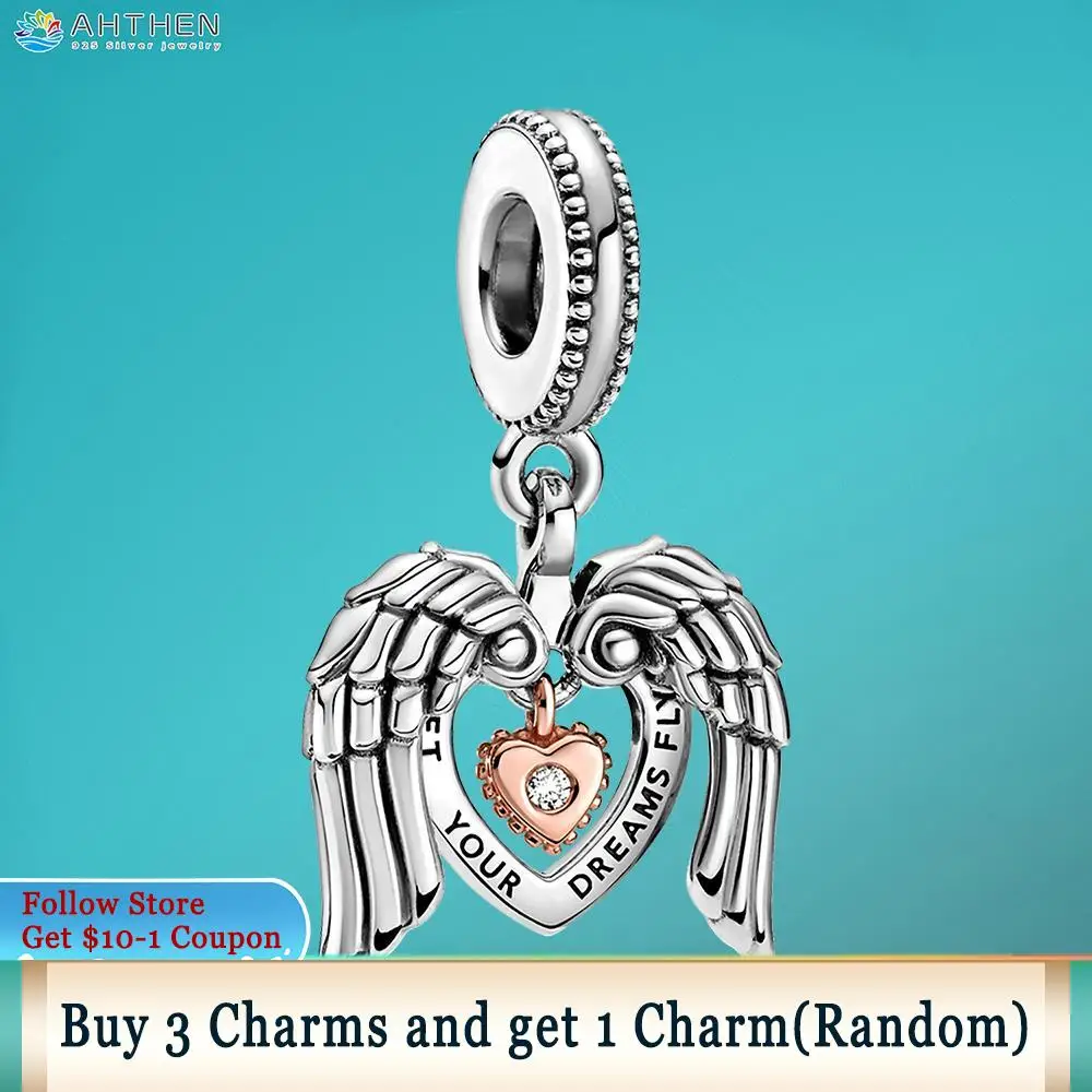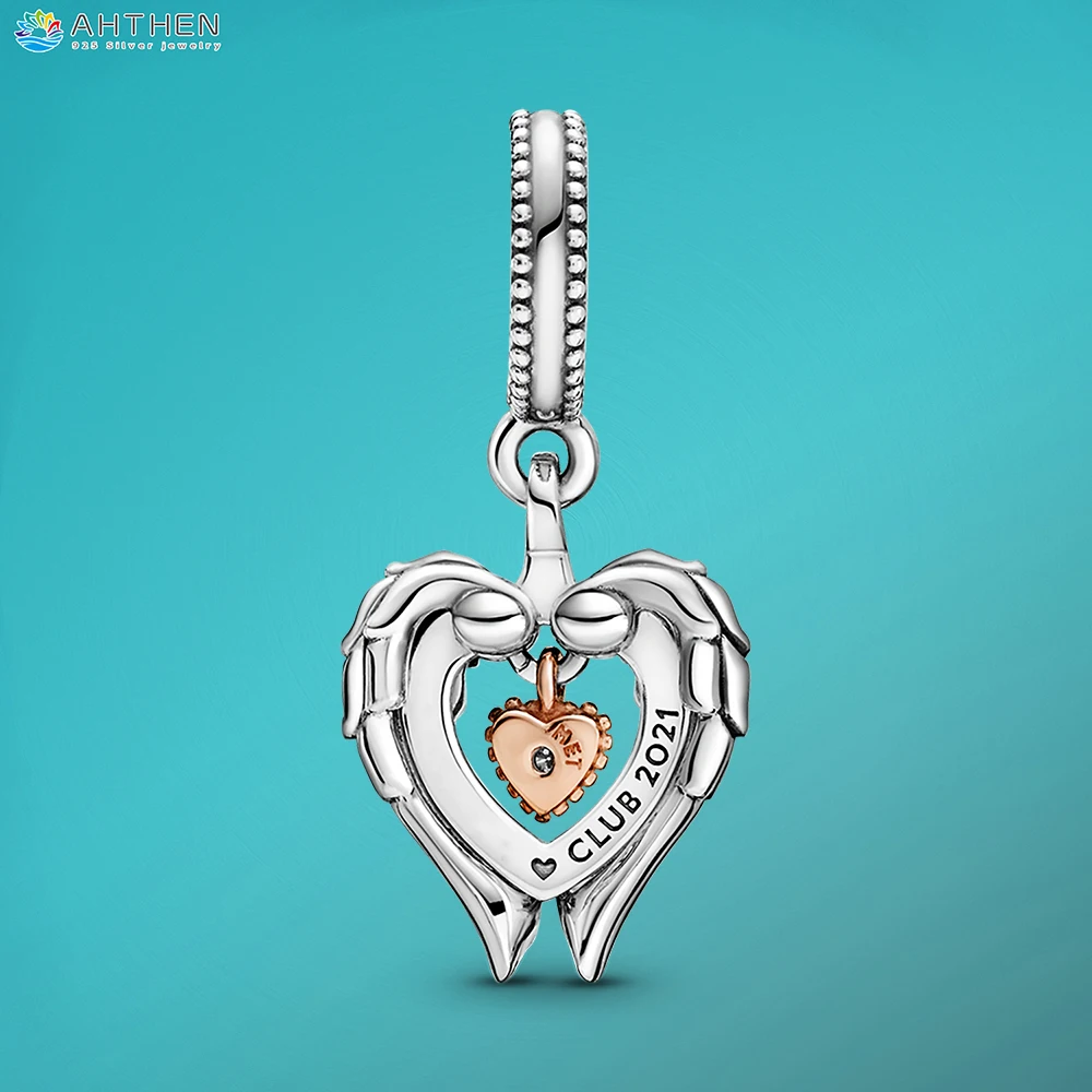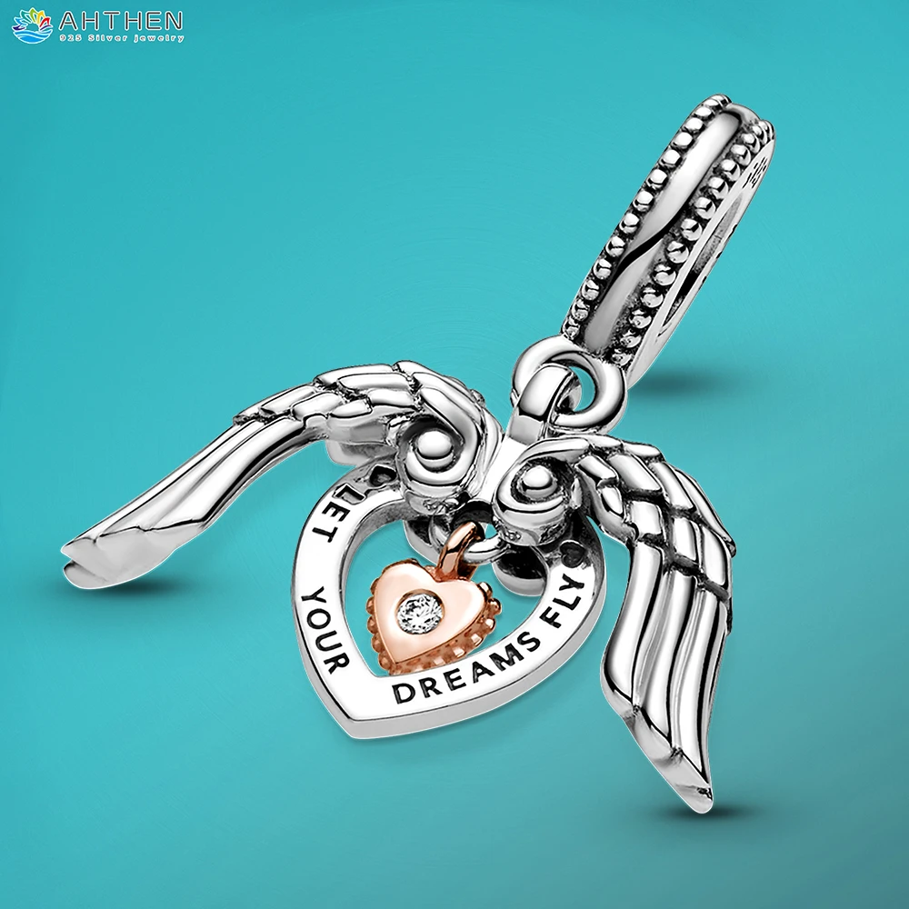 Подвеска в виде крыльев Ангела и сердца Ahthen серебряные бусины 925 пробы, оригинальные браслеты для женщин, изготовление ювелирных изделий, подарок