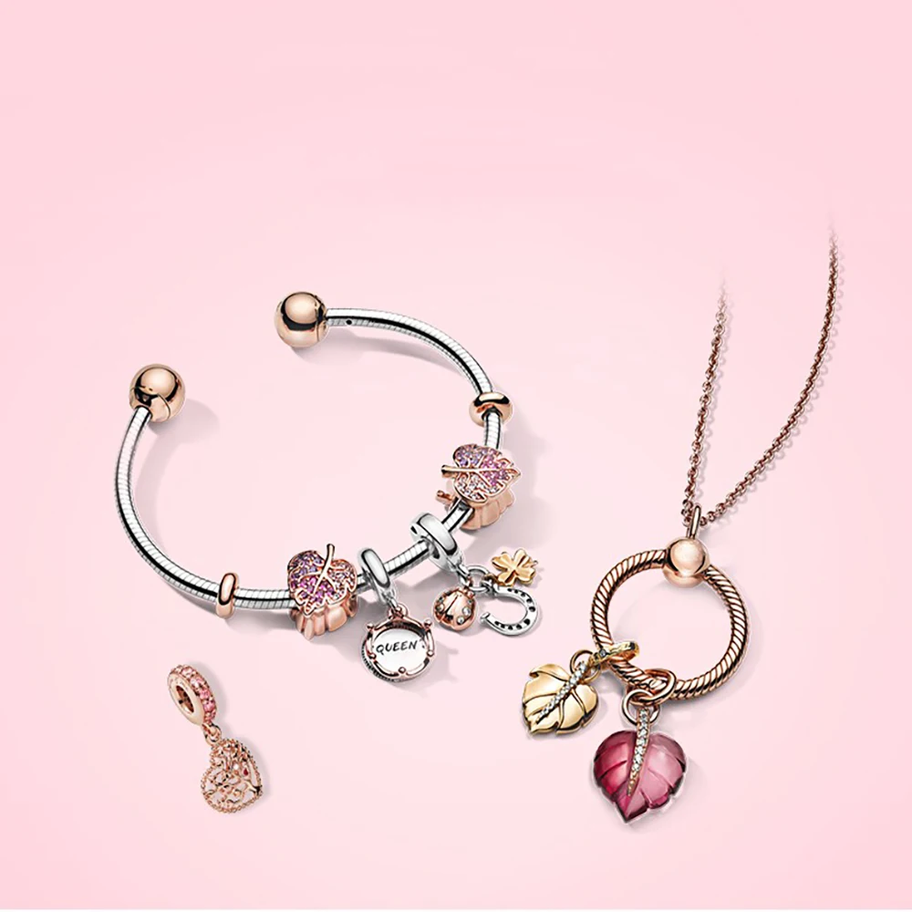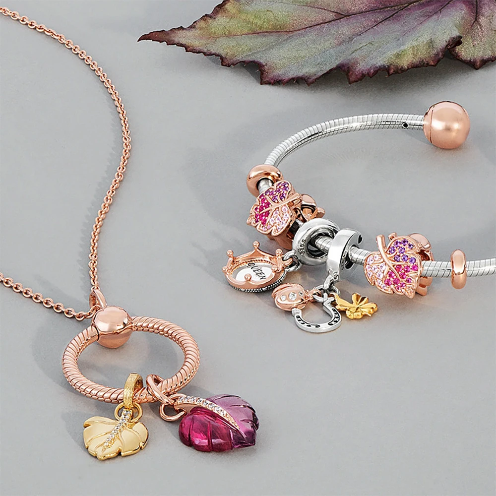 Подвески из муранского стекла с листьями и розовым фламинго