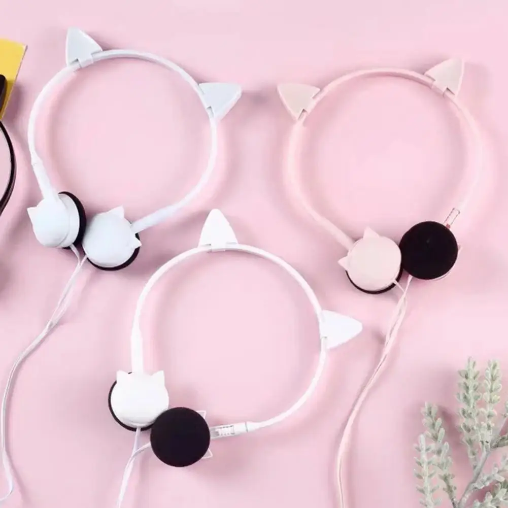 3,5 мм проводной с милыми кошачьими ушками, Форма наушников с микрофоном музыкальный телефон гарнитура Шум шумоподавления наушники
