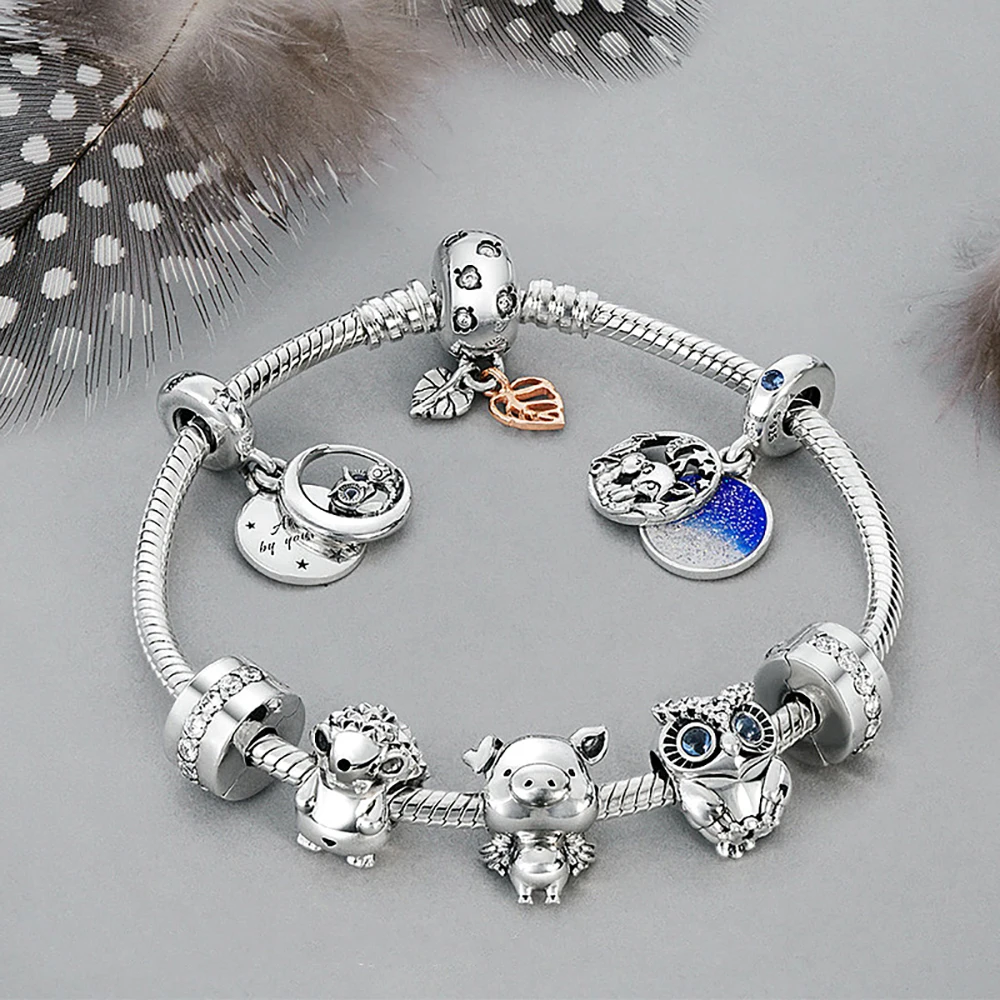 Подвеска для браслета Pandora, подвеска в виде животного, дракона, совы, цепочки, сердца, лисы и кролика