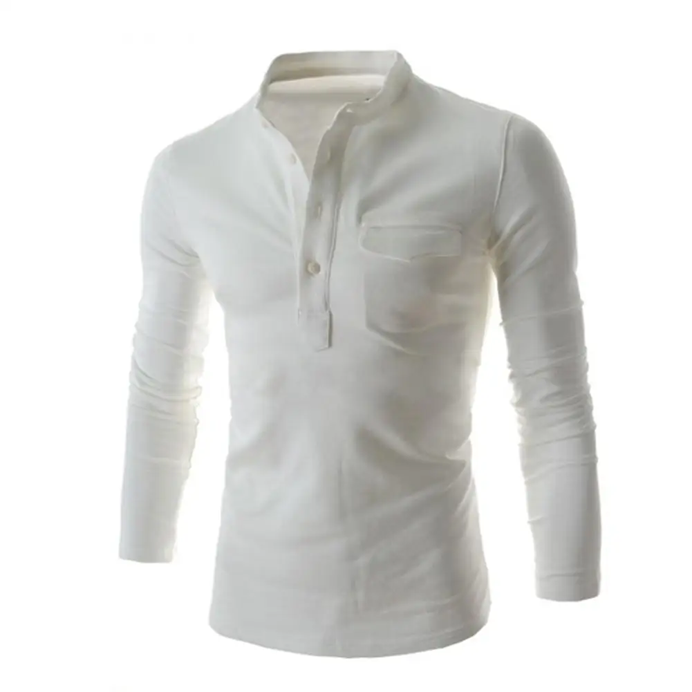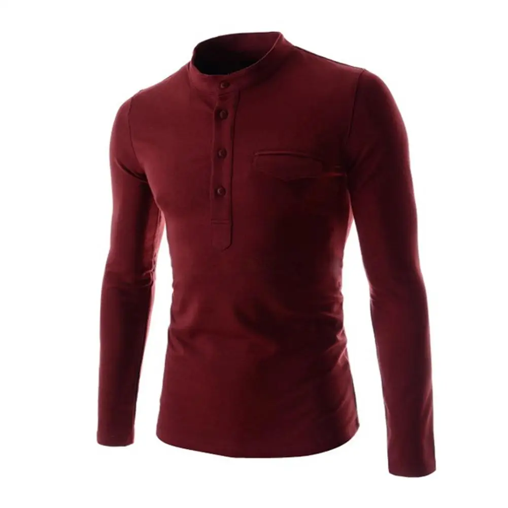 Повседневная футболка мужская футболка с длинным рукавом для мужчин стенд воротник, плотная ткань, Цвет тонкая футболка Мужской приталенный Топ ropa hombre мужская одежда