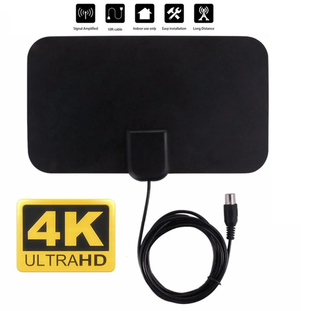 ТВ-приставка DTV Box 4K HD 25 дБ с высоким коэффициентом усиления, усилитель радиуса 140 миль, активная комнатная антенна HD, плоская конструкция Fox DVB T2, ТВ-антенна