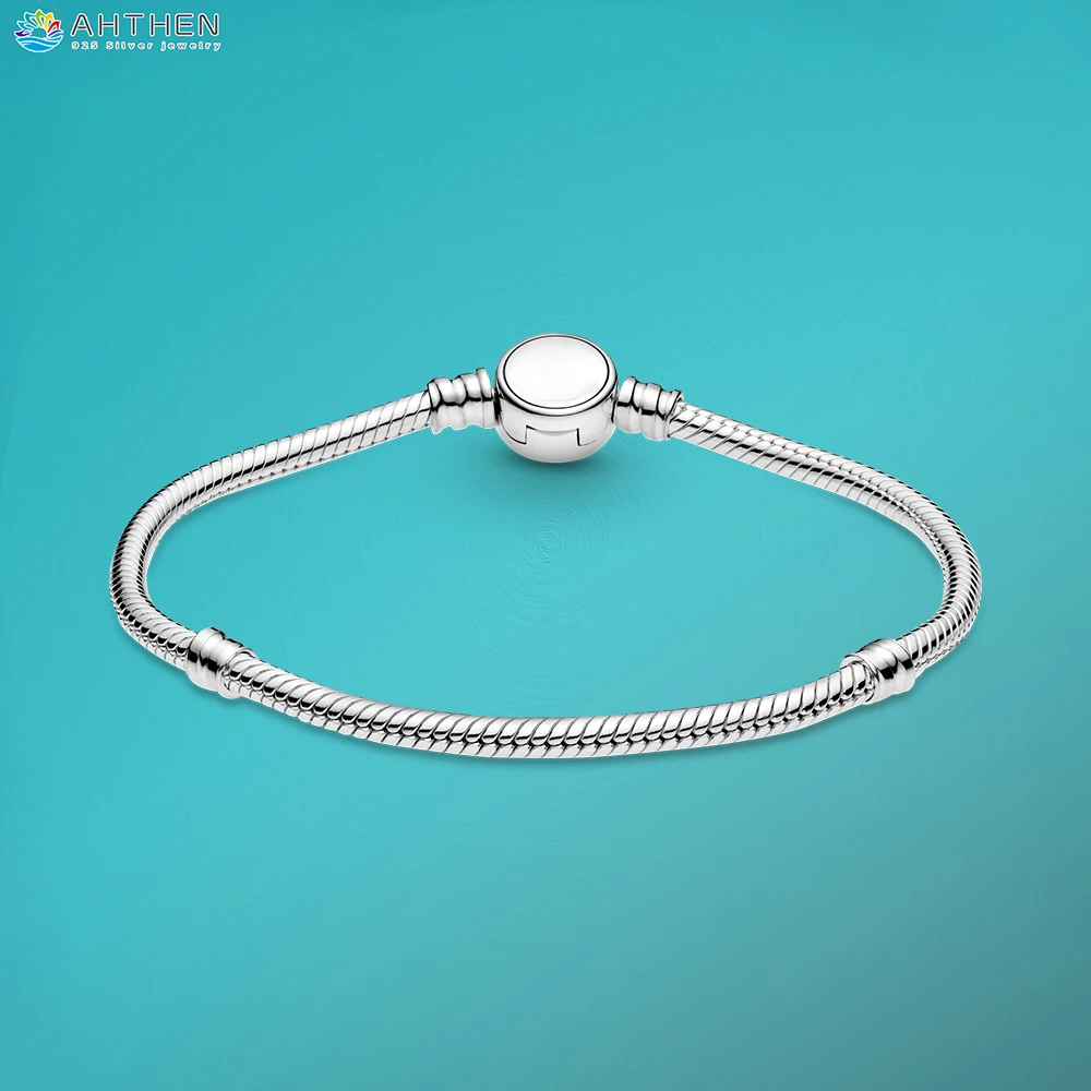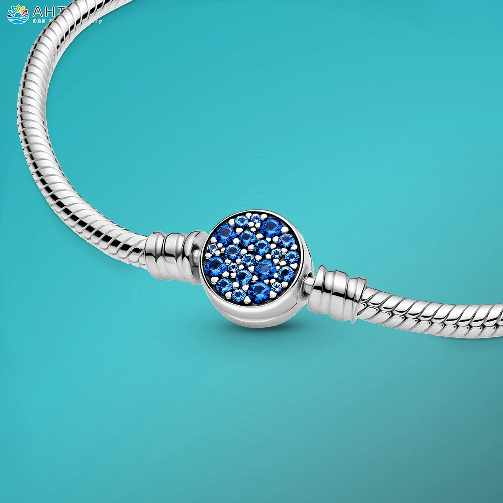 Браслет женский из серебра 925 пробы, с сияющей дисковой застежкой