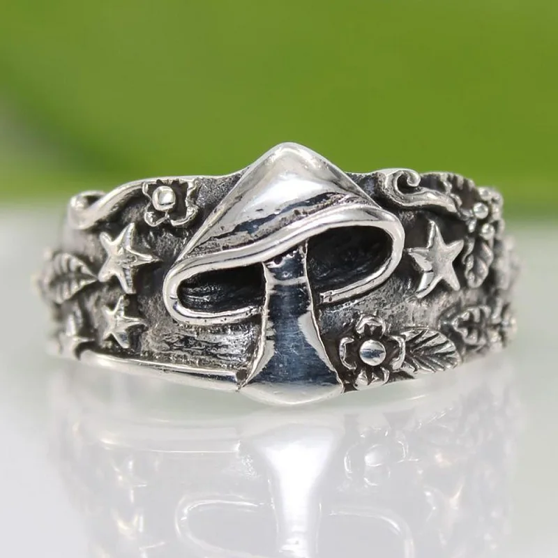 Винтажное кольцо с рисунком в виде гриба в виде звезды в стиле ретр...